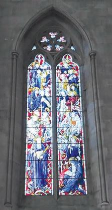A handful of saints warrant more than one mention. Our Lady, of course, is honoured on all sides; in the great rose window illustrating the mysteries of the Rosary, in the magnificent window in the North Transept showing scenes from her life in relation to the Old Testament, and in the windows of the Lady Chapel. She often appears with St Joseph, as in the windows of the Blessed Sacrament Chapel, originally dedicated to St Joseph and showing episodes from his life.