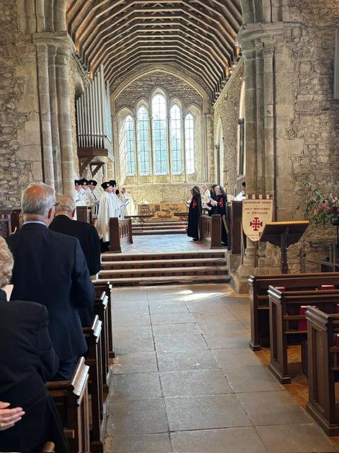 It is, of course, today an Anglican church, but when its vicar, Canon Martin Lane, agreed that our Southern Section of the Order could celebrate the first Catholic mass there since the Reformation, we were overjoyed. As we assembled in preparation for our entry procession the local bellringers rang a carillon for us. We then processed solemnly around the church and entered through the south door. Bishop Richard Moth, our Prior, celebrated mass with plainsong that had almost certainly not been heard in the church since the 16th century and lusty hymns familiar to both the large Anglican and Catholic congregation. There was a spellbinding sense of prayer and thanksgiving which reverberated through that wonderful place. And afterwards, on a lighter note, we enjoyed a magnificent lunch at the excellent Millstream Hotel.
