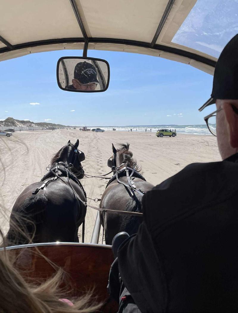 Lørdag var det planen at ride på egen hånd til stranden - men vi var så heldige, at vi blev inviteret på hestevognstur.