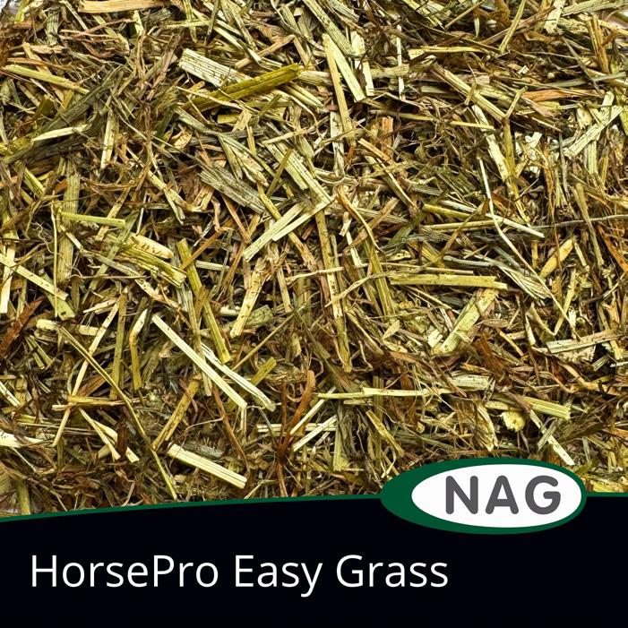 Lækkert græsprodukt bestående af snittet, kunsttørret timothe og esparsette tilsat 4% rapsolie. Det indeholder letfordøjelige fibre og kan bruges til alle typer af heste, også de der er sensitive overfor sukker, da HorsePro Easy Grass max. indeholder 5% sukker. Det har et godt proteinindhold på 12% råprotein. Det kan bruges som fiber supplement, til at forlænge tyggetiden af krybbefoderet eller delvis erstatte hø eller wrap.