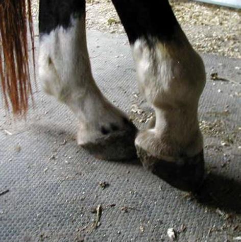Den misforståede mekaniske halthed På videooptagelser ser det ud som om, hesten har brækket bagbenet. Den nederste del af benet hænger slapt bagefter, mens den øverste del af lår og underben ikke kan bøjes, og hesten kan tilsyneladende ikke løfte benet og få det frem.