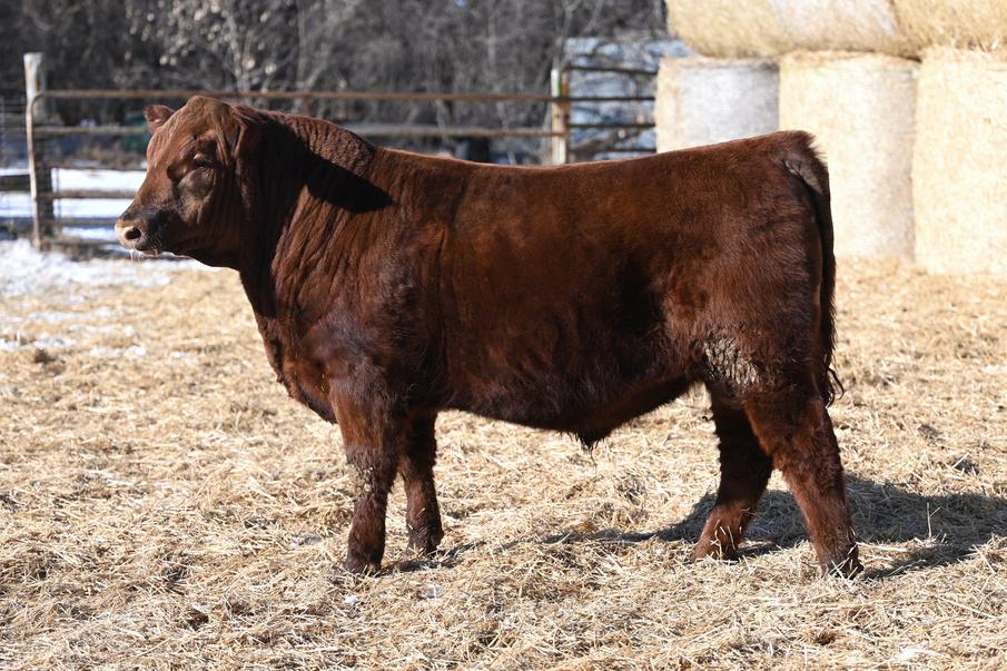 The Victoria cow family continues to raise some of the highest quality calves and this thick, rugged made bull certainly rises to the top. He’s an outlier in the group in terms of dimension and overall thickness and one who doesn't disappoint on paper either. The Maxed Out cattle have had always had a positive influence and consistent quality for us A maternal sister sold for 10,500 and had a show career to live up to winning the MN state fair red angus show as both a bred heifer and cow calf pair. MATERNAL SIB