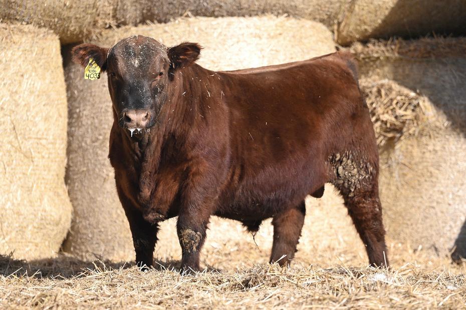WEBR Maximize J129 had his first calf crop hit the ground last year and they were as impressive as any. Two daughters sold in the reigning reds sale this past fall commanding 12,500 and 8,250. 4068 inhereted his sires length, look, and shape and would be an ideal calving ease option.