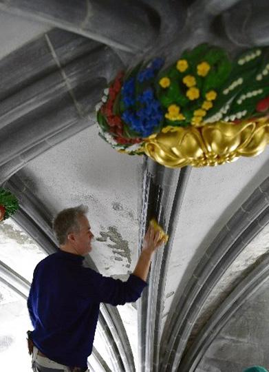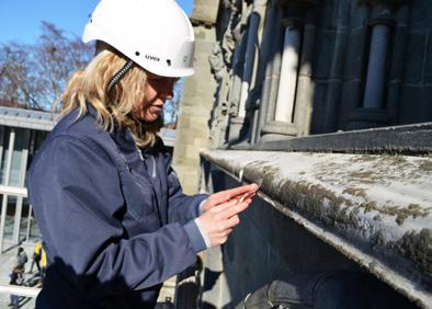 og vandringer hindrer unødige ødeleggelser av fasadene. I denne forbindelse har vi i sommer tekket de øvre parapetene på skipet. Likeså er taket på det nordre vestfronttårnet tettet.