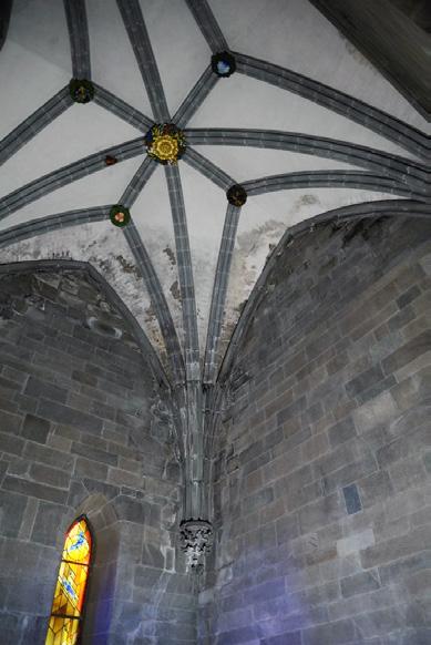The Gothic nave is placed so close to the Romanesque transept that it blocks several of the windows either partially or completely. Many traces in the masonry show that the plan was to demolish the old transept and build a new transept in the same style and height as the Gothic nave and chancel.