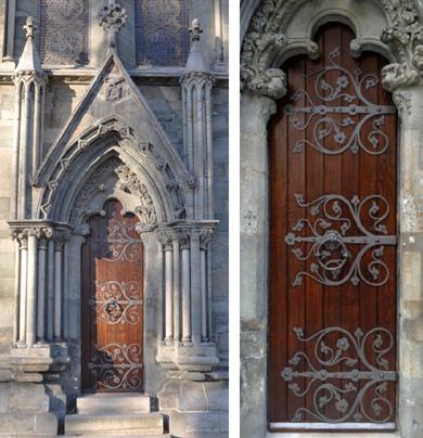 Nedre del av begge tverrskipa er bygd i anglo-normannisk stil. Det vil seie romansk stil slik han vart utvikla i Normandie ved midten av 1000-talet og overført og utvikla i England etter 1066. Omkring midten av 1100-talet stilen vart formidla vidare frå Nord-England over Nordsjøen til Vestlandet og Trøndelag (Fig. 5). Tre viktige kjennemerke ved denne stilen er chevron- eller sikksakkborder, foldekapitéler (scalloped capitals) og dyremasker ved endane av dekkbogane (lapel stops). Dessutan er skulpturkonsollar (corbels)