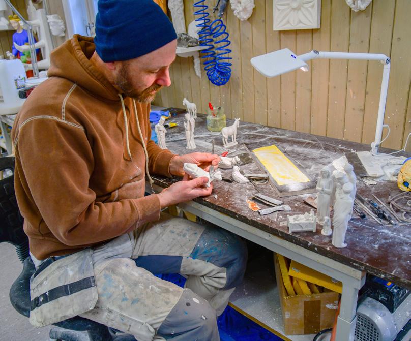 Gipsmaker Joseph Carter har gjennom 10 år modellert en ny figur i året, og nå er NDRs julekrybbe fullført, med Den hellige familie, gjetere, dyr og De tre vise menn. Figurene støpes enkeltvis i gipsverkstedet, og selges bare gjennom vår butikk i Besøkssenteret.