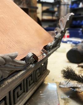 I smia har det blitt endringer inneværende år, da smed Odd Inge Holmberget gikk av med alderspensjon etter over 40 år ved NDR. Dette kan det leses mer om i en egen artikkel i årboka. Inneværende år har vi satt av tid til å overføre noe av Odd Inges brede kompetanse til de yngre smedene, Jens Strassegger og Magnus Vartdal. Det har blitt utført flere spennende eksterne oppdrag, blant annet restaurering av lyktene til Sparebank1SMN i Kongensgate 4 her i Trondheim. Dette arbeidet finner du også omtalt i en artikkel senere i årboka. Likeså er det produsert mange titalls meter med kirkegårdsgjerde til domkirkegården, på oppdrag fra Kirkelig fellesråd.