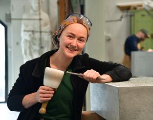 Fig. 1: Katharina Voller fra Køln er en av de nye som har jobbet med steinhugging til Sørgavlen de siste månedene.