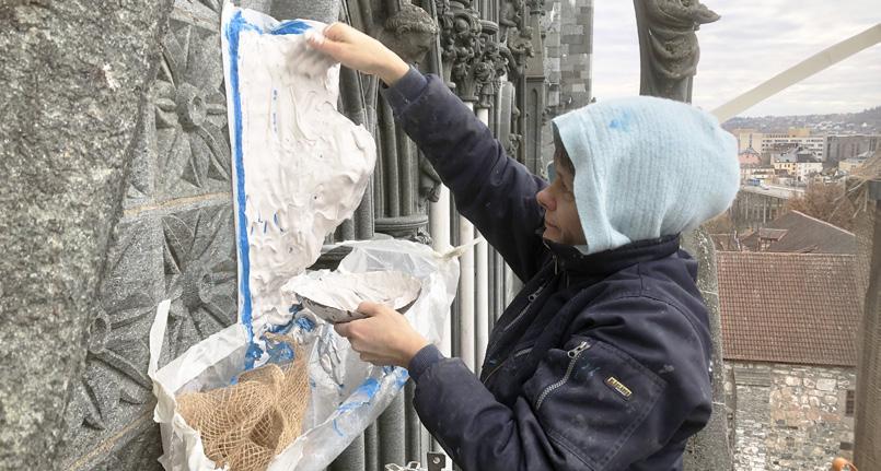 Katharina Voller from Cologne is one of the newcomers who has been carving stone for the south transept’s gable wall in recent months.