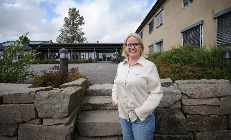 Hun går igjennom et oppholdsrom på Re helsehus, og trekker inn duften av nybakt, hjemmelaget eplekake. Eplene er høstet i sansehagen som utgjør bakgården ved helsehuset. – Jeg vil at det skal lukte hjemmelaget mat på alle institusjonene våre. Det er viktig at pasientene får i seg god og næringsrik mat, og at de får dekket behovene sine. Men mat handler om mer enn det man putter i munnen. Det handler om opplevelser, fellesskap og livsglede, og jeg vil at måltidet skal være et høydepunkt, sier Carina.