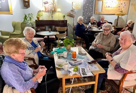 Adventssamlingen ble til strikkekafe. Aud Engmann, Mary Hersve, Grethe Bjune Andersen og Tone Karlsen er blant beboerne på Midtløkken som setter pris på invitasjonen fra Frelsesarmeen om et besøk på Skapeverket kafé i Rådhusgaten.