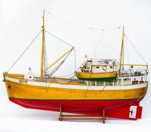 Denne fiskebåten ble bygd av Ulvan på Hitra på 1960-tallet og eid av Røy Jøssund noen år før den ble solgt til Flatanger. Der forliste den. Motoren var en 6 – 12 hk Saab. Harold Traa har laget modellen.