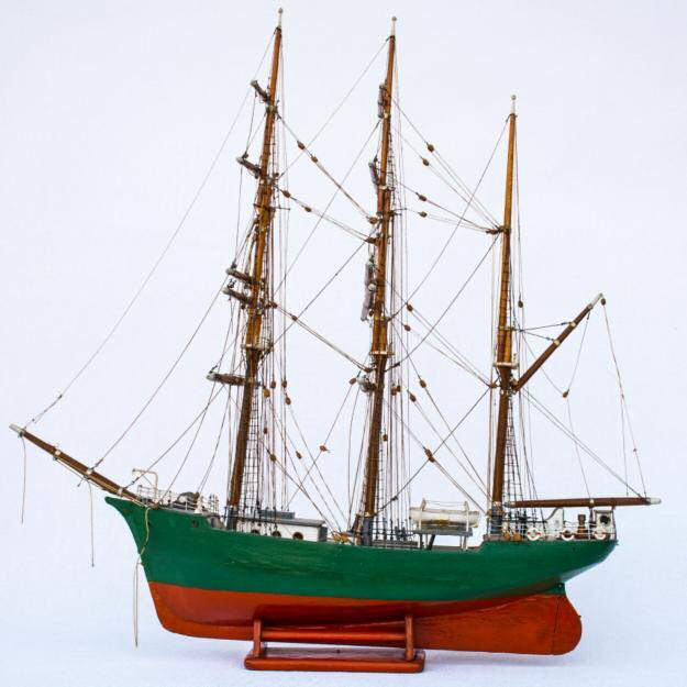 være en langsommelig jobb og Sivert benyttet noe av tiden til å lage denne vakre modellen av galeasen han hadde reist med. Henriette var Siverts stedatter og skutemodellen eies i dag av et barnebarn av henne.