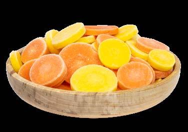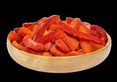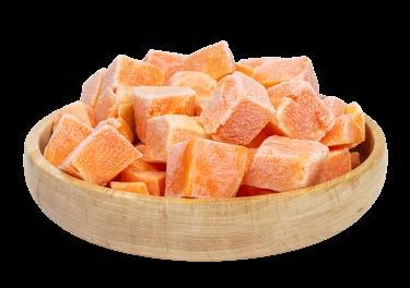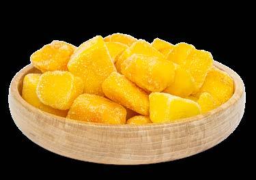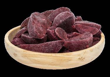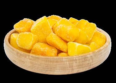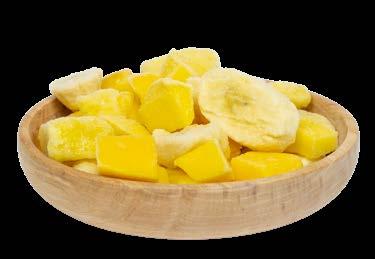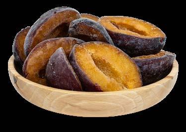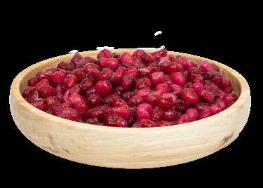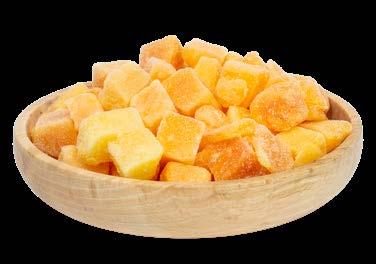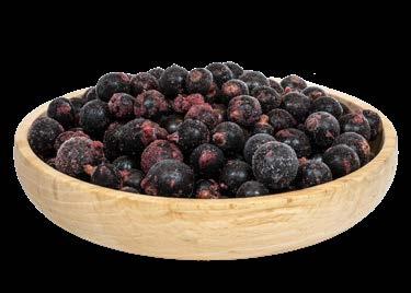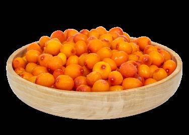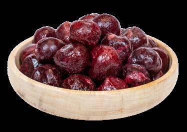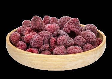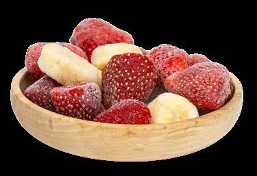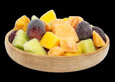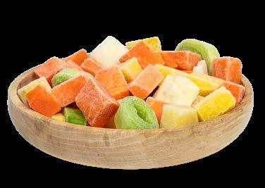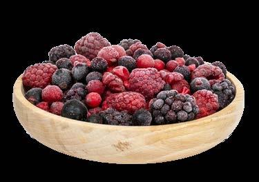 Mange forskjellige frukter/bær, både rene råvarer og blandinger.