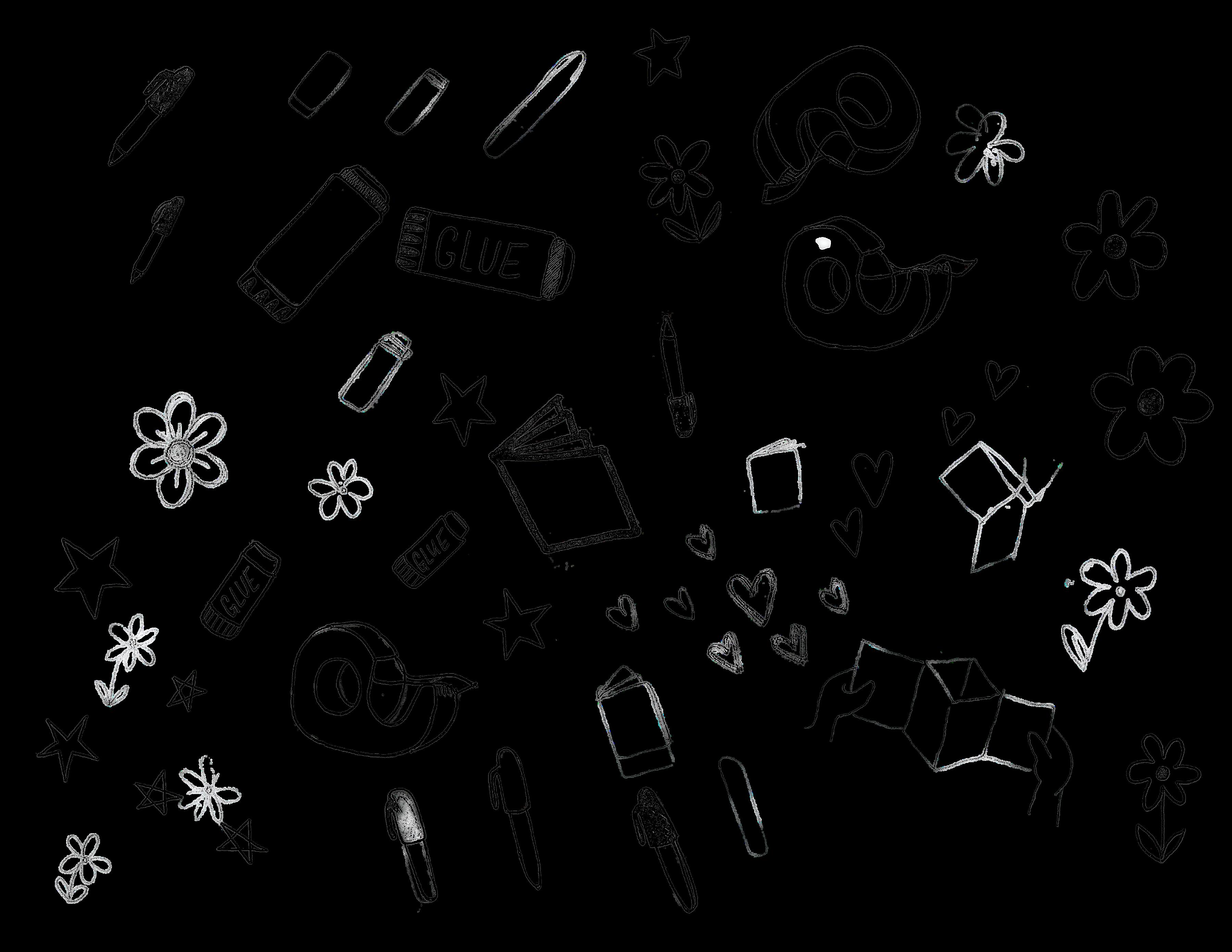 Zines are often made from low-cost, accessible, and readily available materials. Such as printer paper, pencils, markers, magazines, stamps, and found materials.