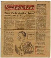 CoverMajalahMingguPagitentang AdamMalikyangdiangkatsebagai DirekturAntara,1950