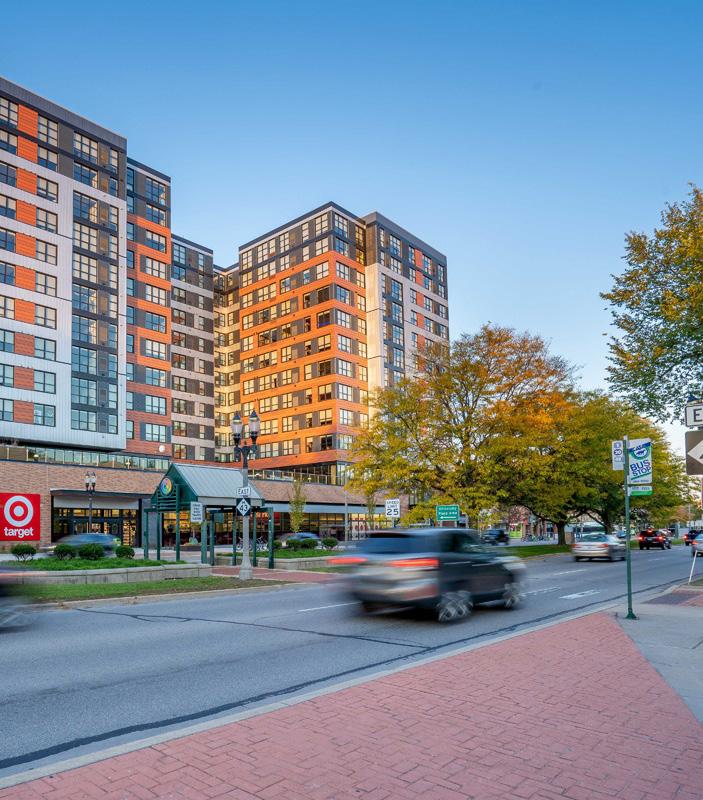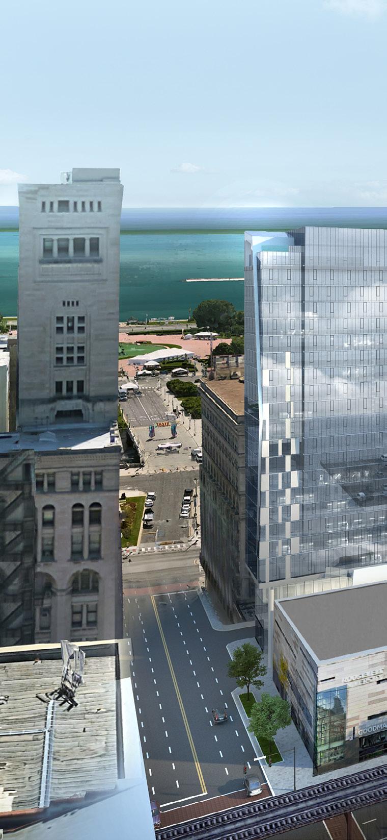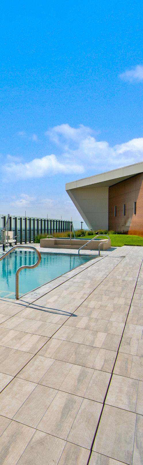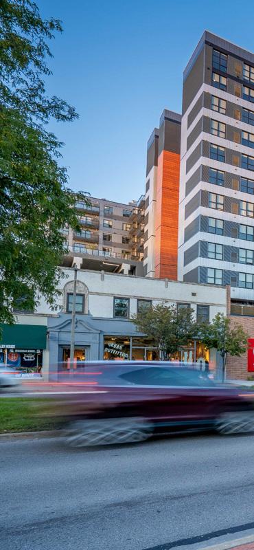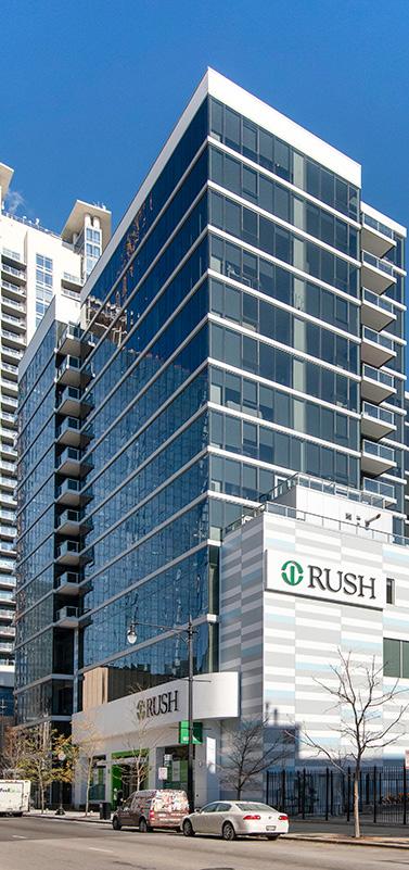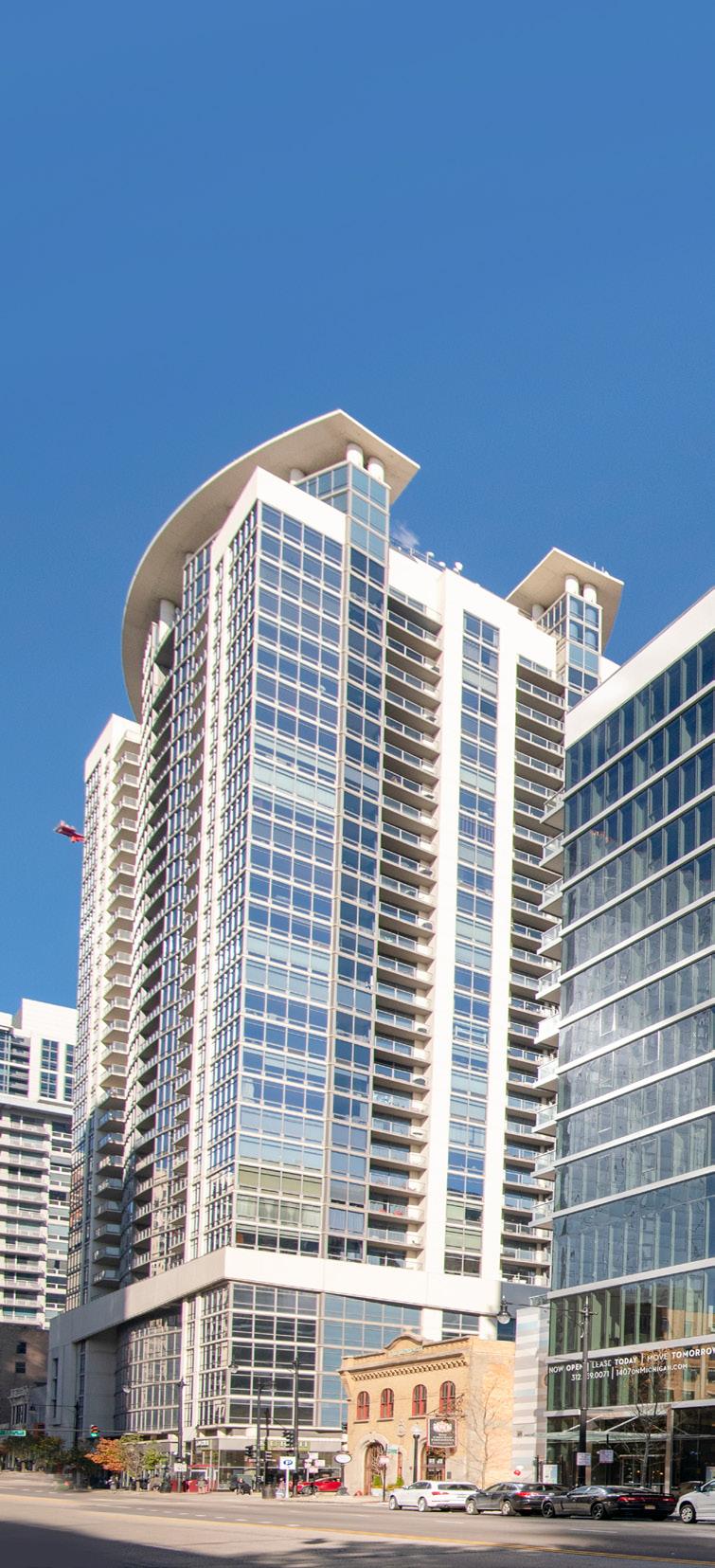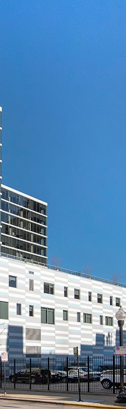 1407 on Michigan is a 270,000 SF, 15-story high-rise rental property that is built to Type 1A construction. This LEED® Silver certified project is located next to the newly restored Chicago Firehouse Restaurant and replaced a vacant office building once owned by the National Association of Letter Carriers. The tower includes 141 parking spaces on three levels and 40,000 SF of the medical office. The dog-friendly building has a mix of studios, one-, two-, and threebedroom apartments totaling 199 units. These units range from 450 SF studios to 1,700 SF, three-bedroom units. It is also designed as a contemporary upscale rental property featuring top tier unit finishes, floor-to-ceiling glass, and high-end amenities.