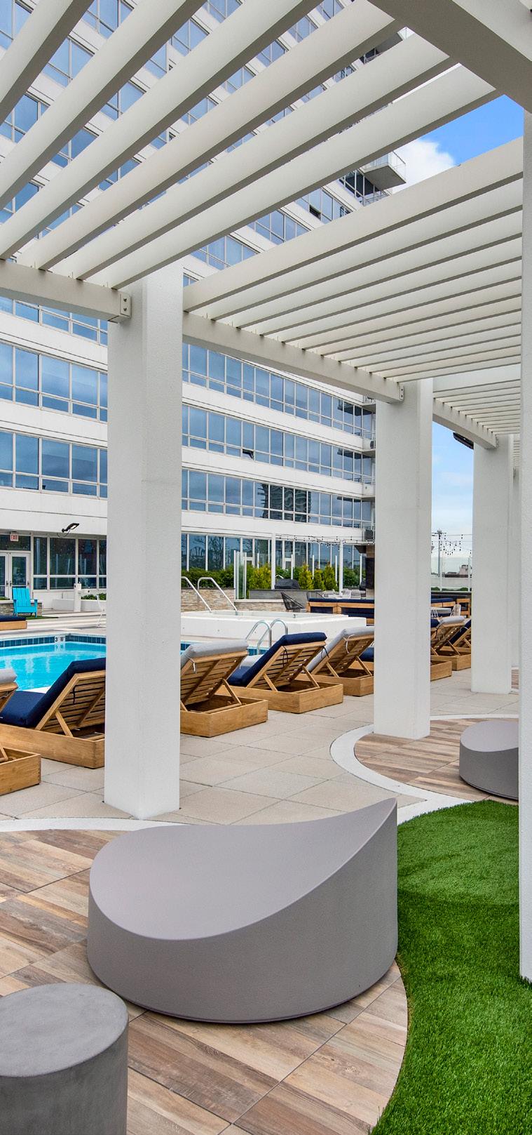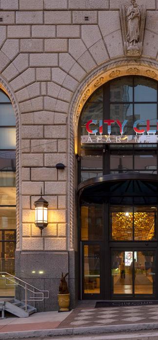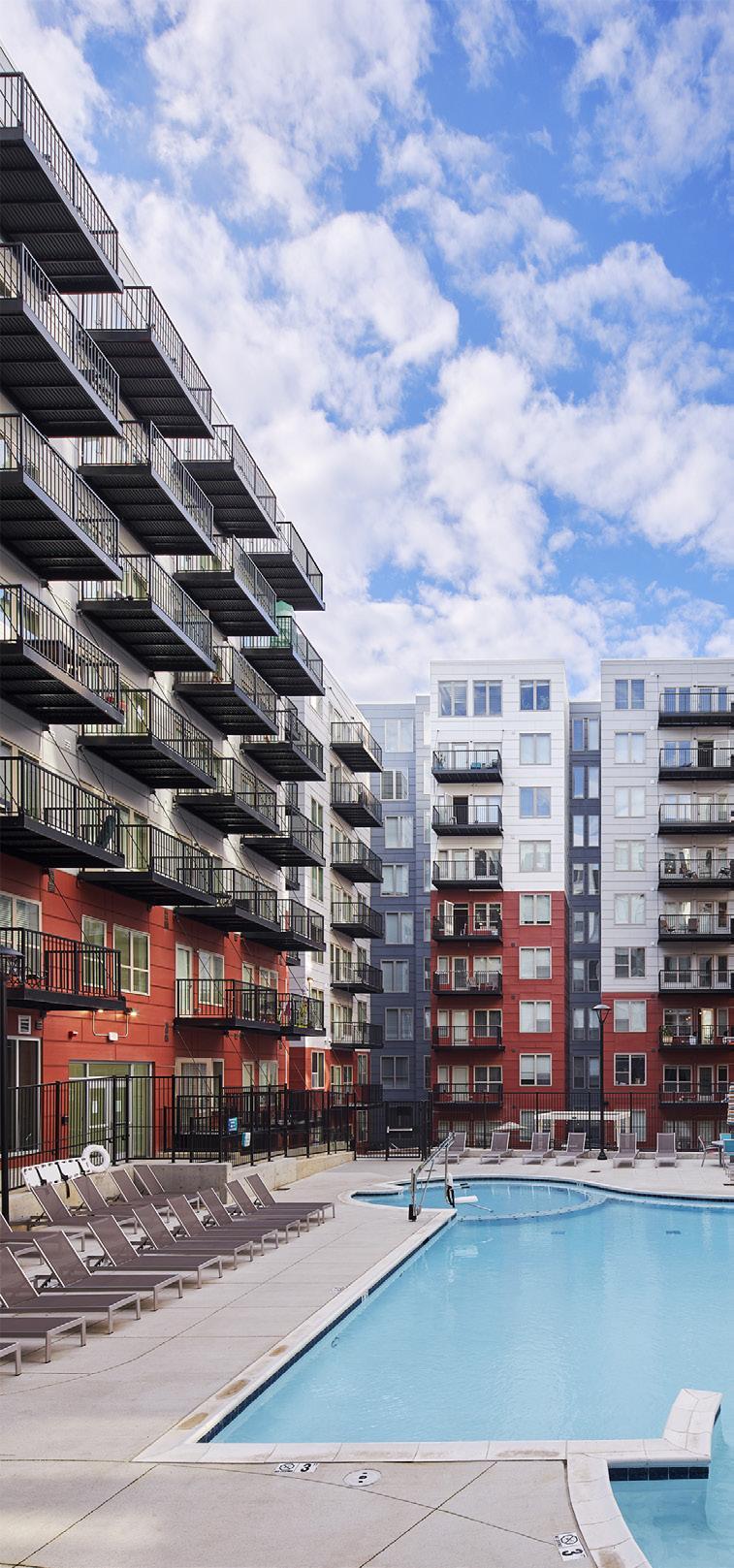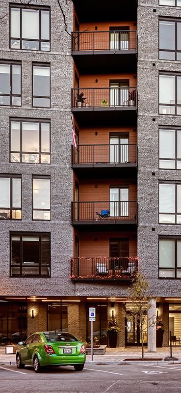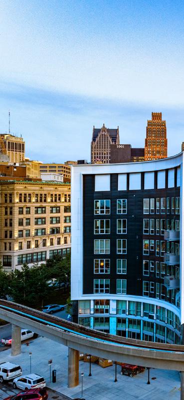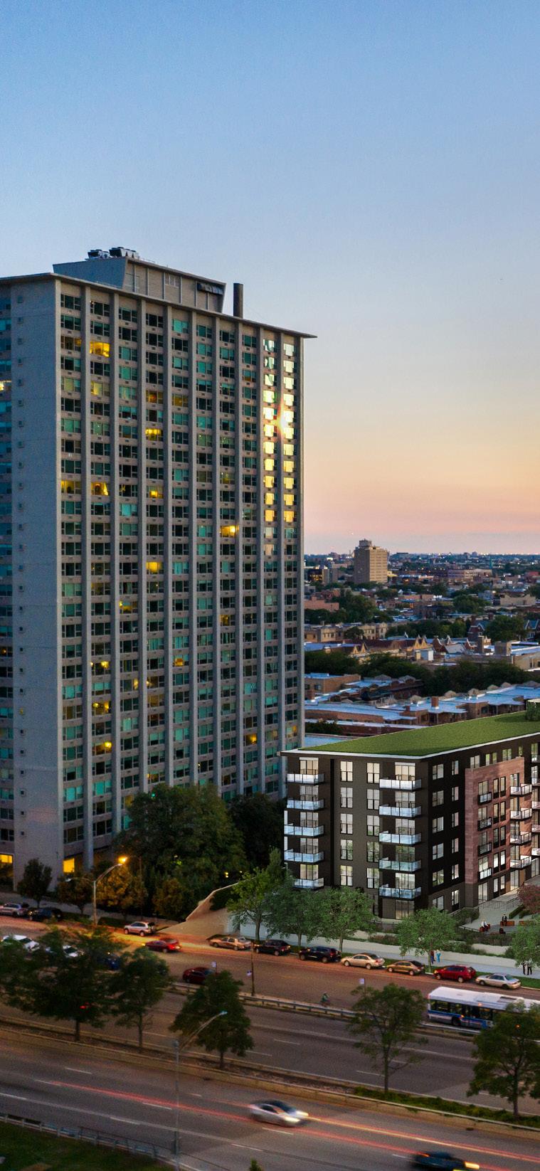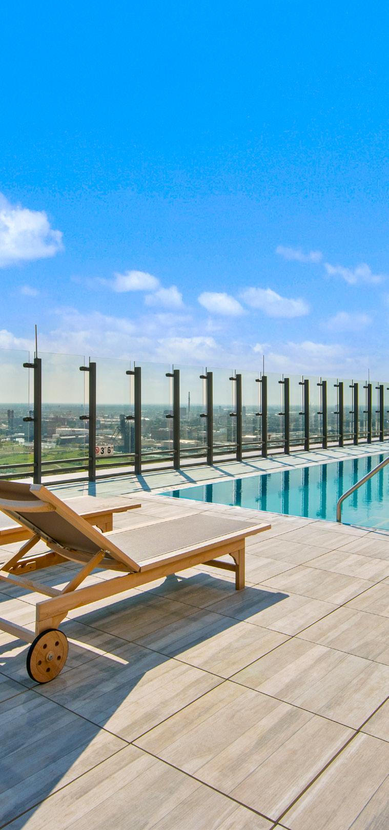 1407 on Michigan is a 270,000 SF, 15-story high-rise rental property that is built to Type 1A construction. This LEED® Silver certified project is located next to the newly restored Chicago Firehouse Restaurant and replaced a vacant office building once owned by the National Association of Letter Carriers. The tower includes 141 parking spaces on three levels and 40,000 SF of the medical office. The dog-friendly building has a mix of studios, one-, two-, and threebedroom apartments totaling 199 units. These units range from 450 SF studios to 1,700 SF, three-bedroom units. It is also designed as a contemporary upscale rental property featuring top tier unit finishes, floor-to-ceiling glass, and high-end amenities.