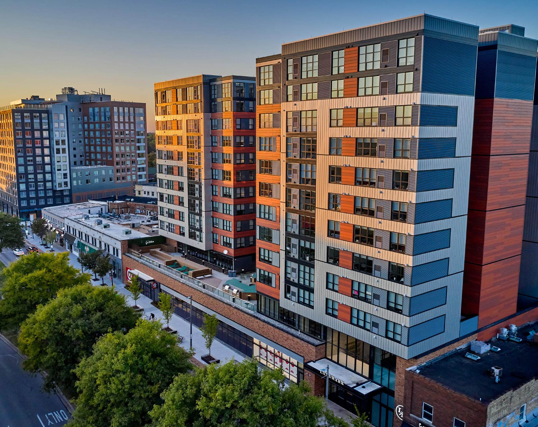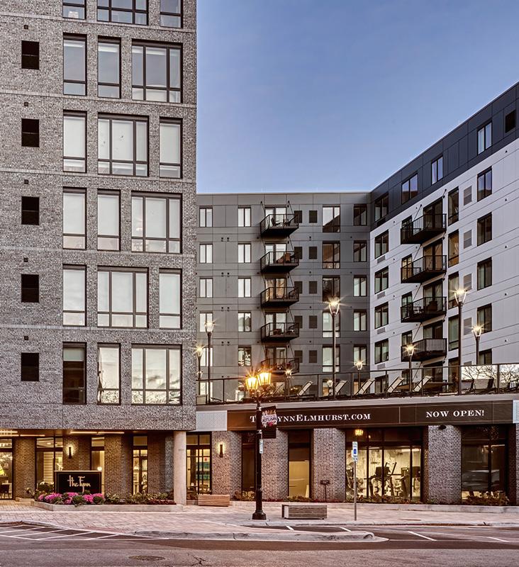 Using light gauge steel construction, The Fynn is a market-rate development located on three combined site parcels, strategically designed as a courtyard building facing Chicago’s bustling Addison Street. With above and below-grade parking and landscape amenities, the project features a leasing center, clubroom, outdoor pool, rooftop terrace, and a fully amenitized plaza area.