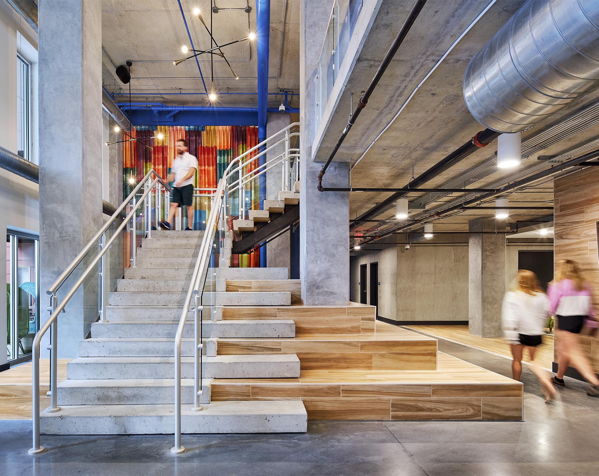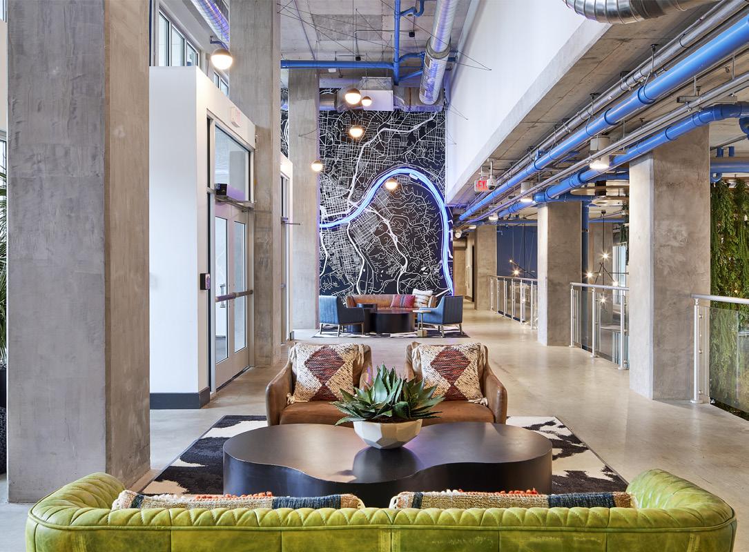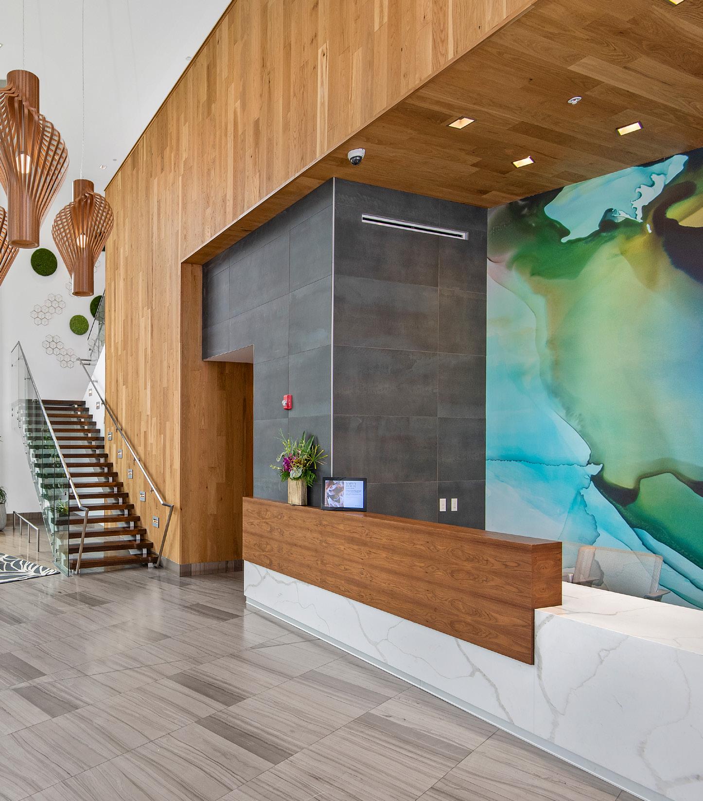 Eleven40 is named for its street address on Wabash Avenue in Chicago. The neighborhood abounds with large scale street murals, including one by Chicago Artist Hebru Brantley that was covered when Eleven 40 was built. The vibrance and character and artistic quality of the neighborhood was important for the design team to respect and integrate into the project. The concrete streetscape was something for the design team to purposefully contrast and was viewed as an opportunity for inspiration in both interior and exterior spaces. The city of Chicago’s commitment to creating green spaces throughout the city was a driver to incorporate greenery within all aspects of the project. Eleven 40 is a residence that supports a live, work and play philosophy for all its residents.