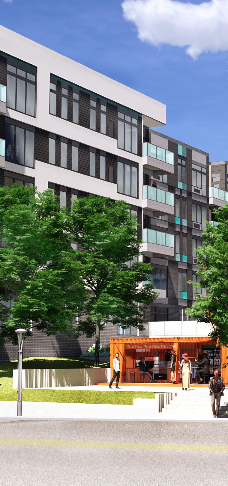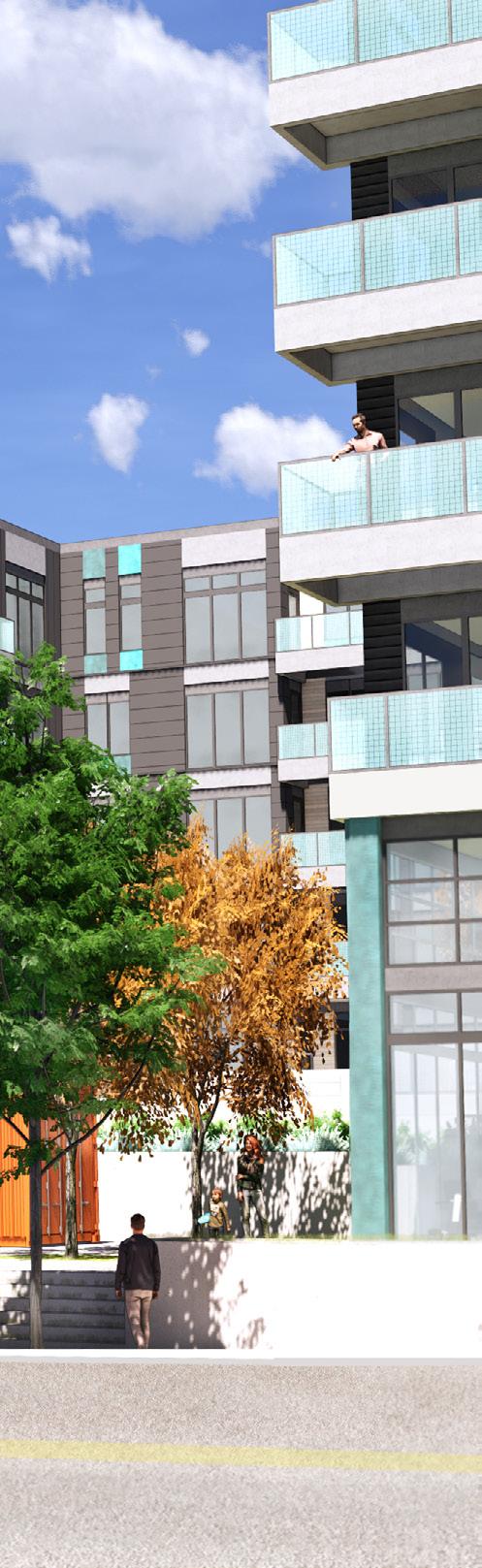 Designed to connect with the surrounding environment, The District enhances the riverfront experience with a bike and kayak shop, dedicated storage, an active river walk, and an engaging streetscape along Waterfront Drive.