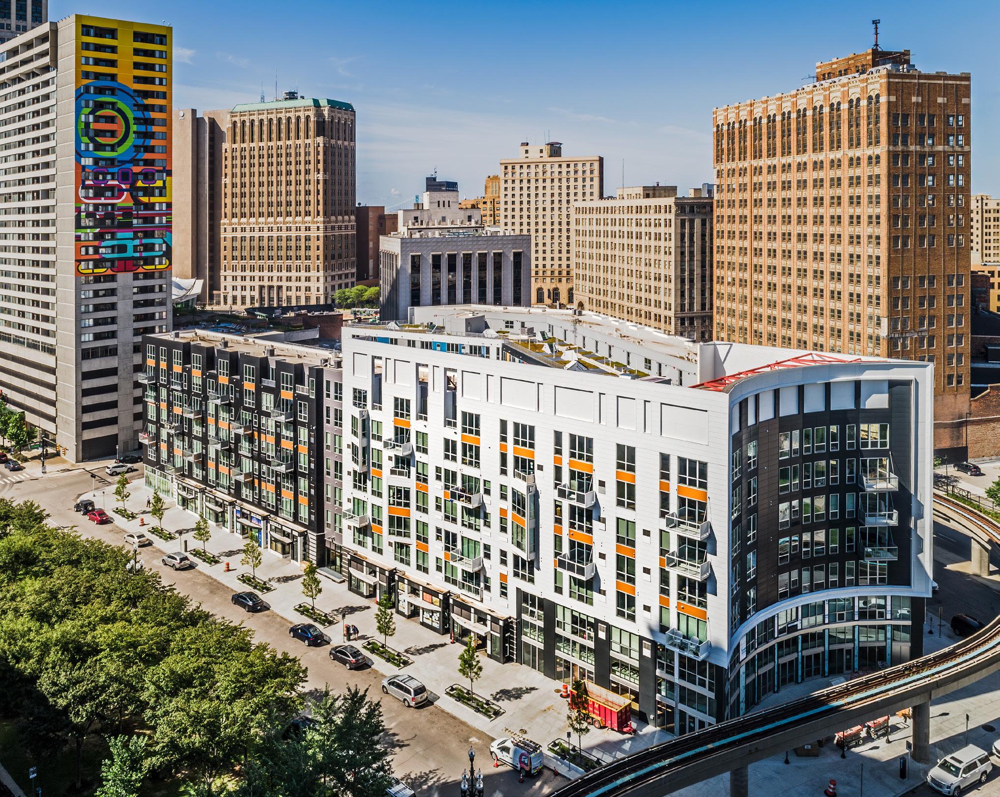 Ann Arbor City Apartments is the first mid-rise luxury apartment and municipal parking ramp in downtown Ann Arbor, setting a new standard for creative architectural and structural design. The team employed an economical alternative to concrete—a steel stud system with composite floors—to achieve greater building height and density.
