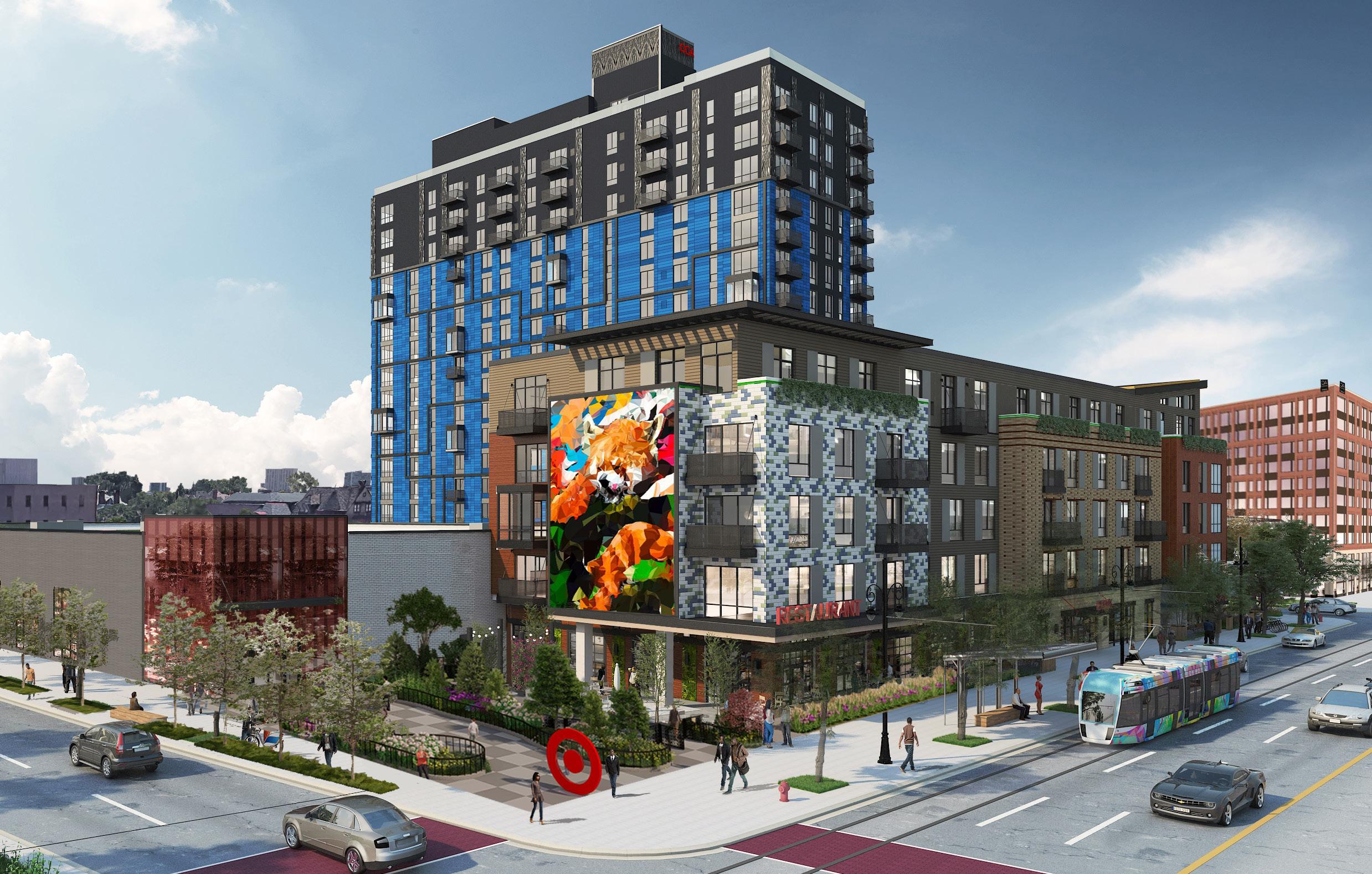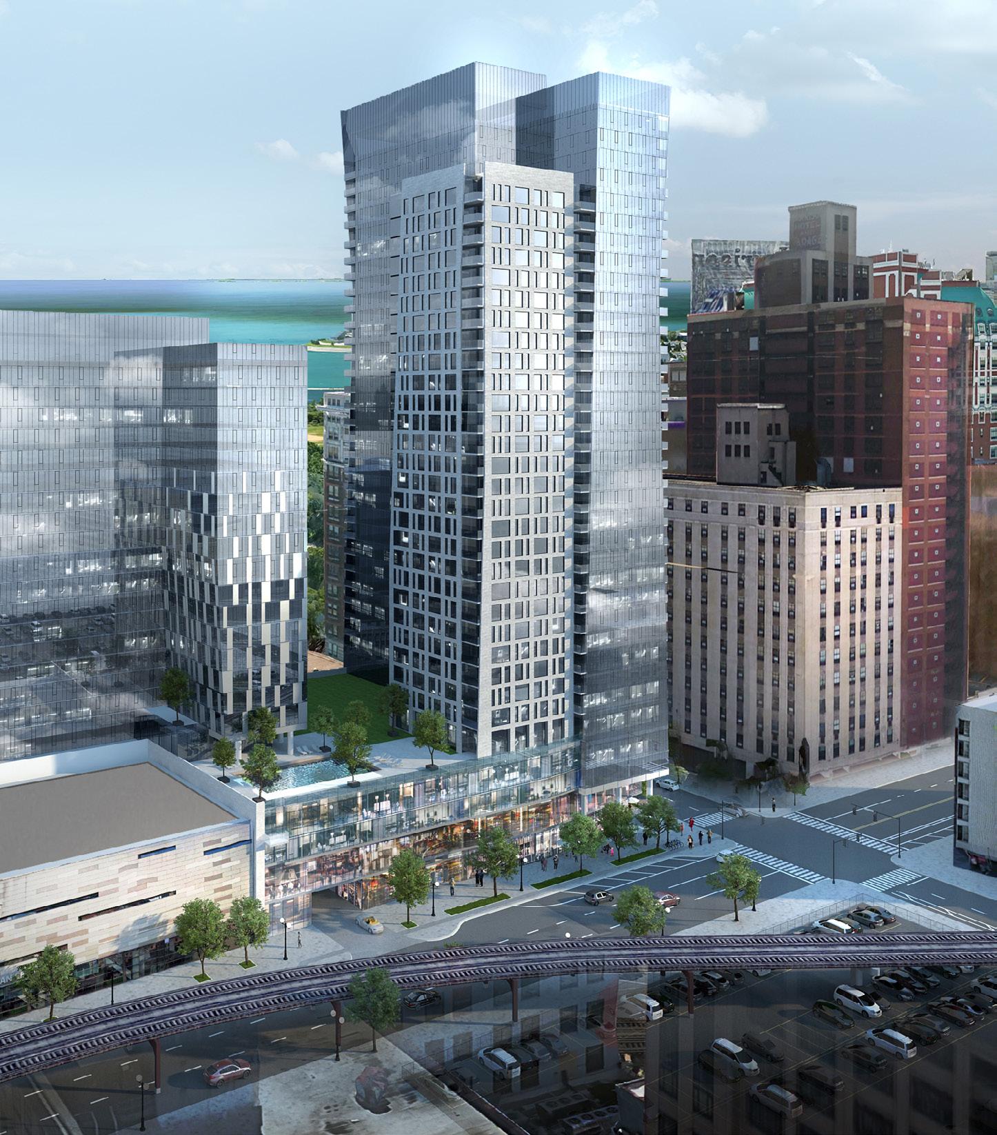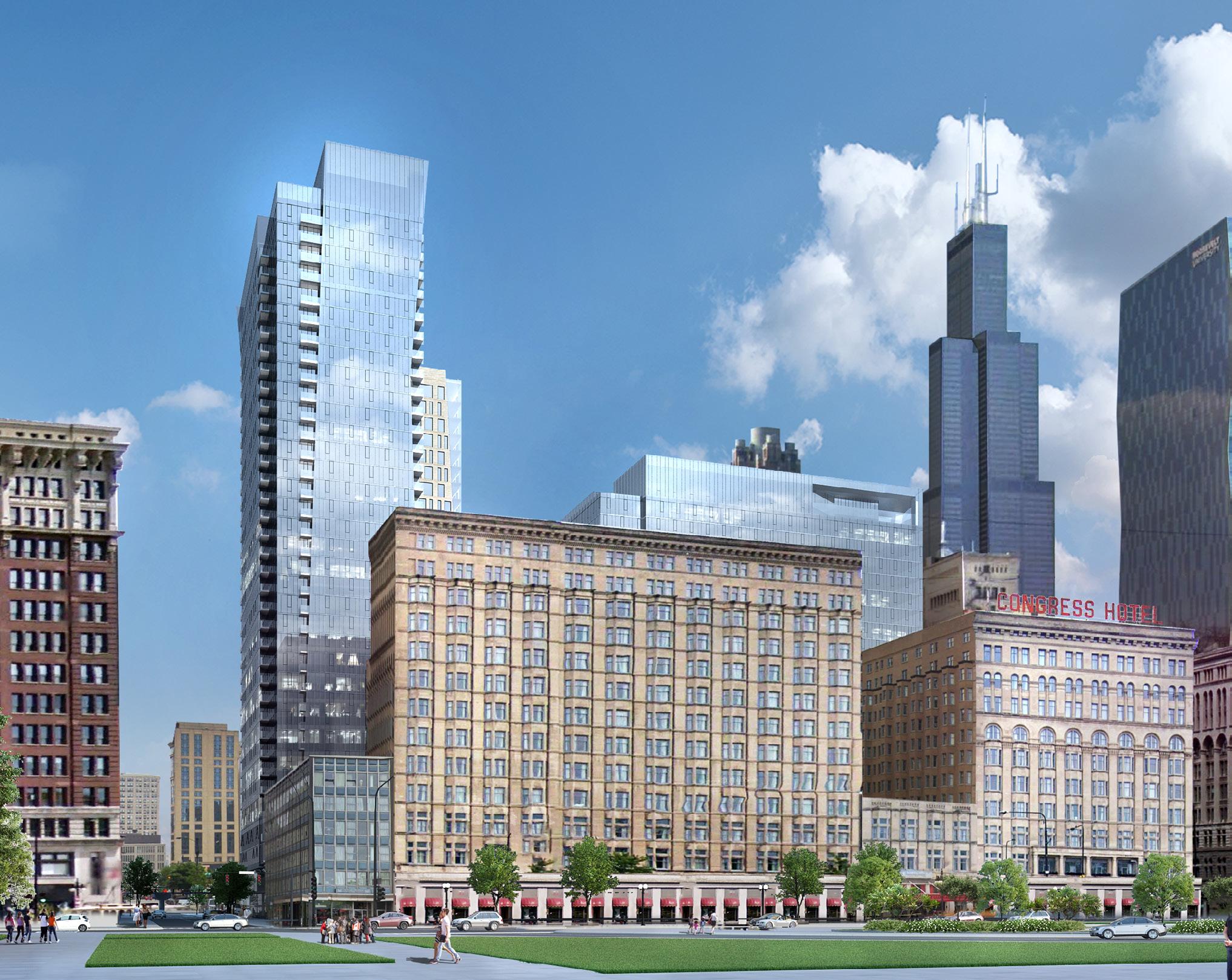 Mixed-use development enhancing Wabash Avenue with retail, residential, hotel.