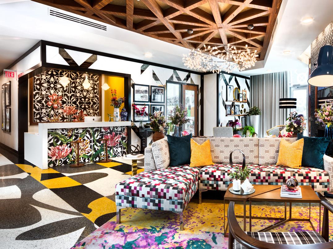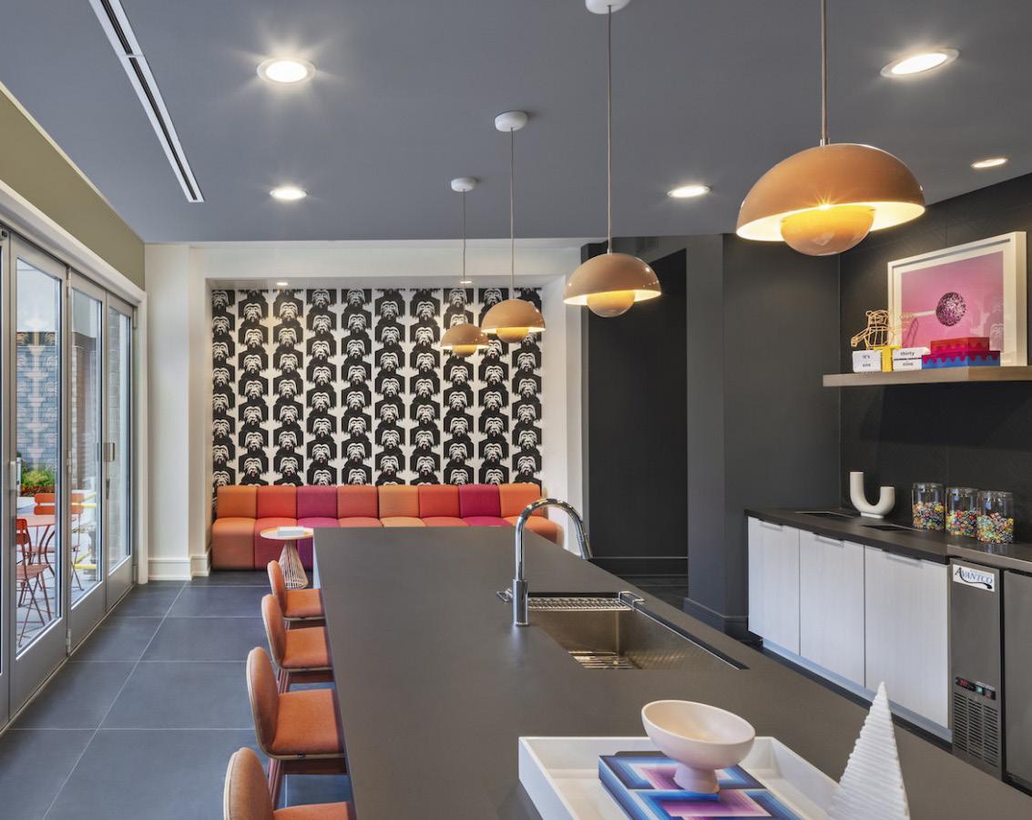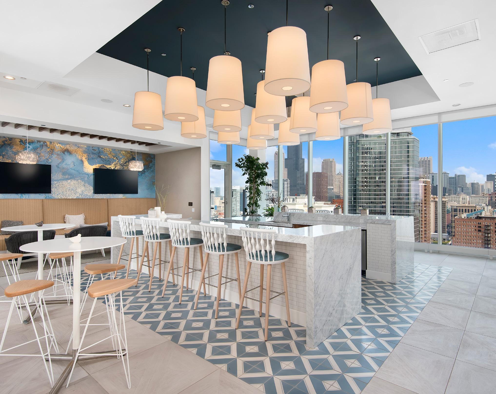 West Loop high-rise interiors refreshed with playful, colorful, engaging design.