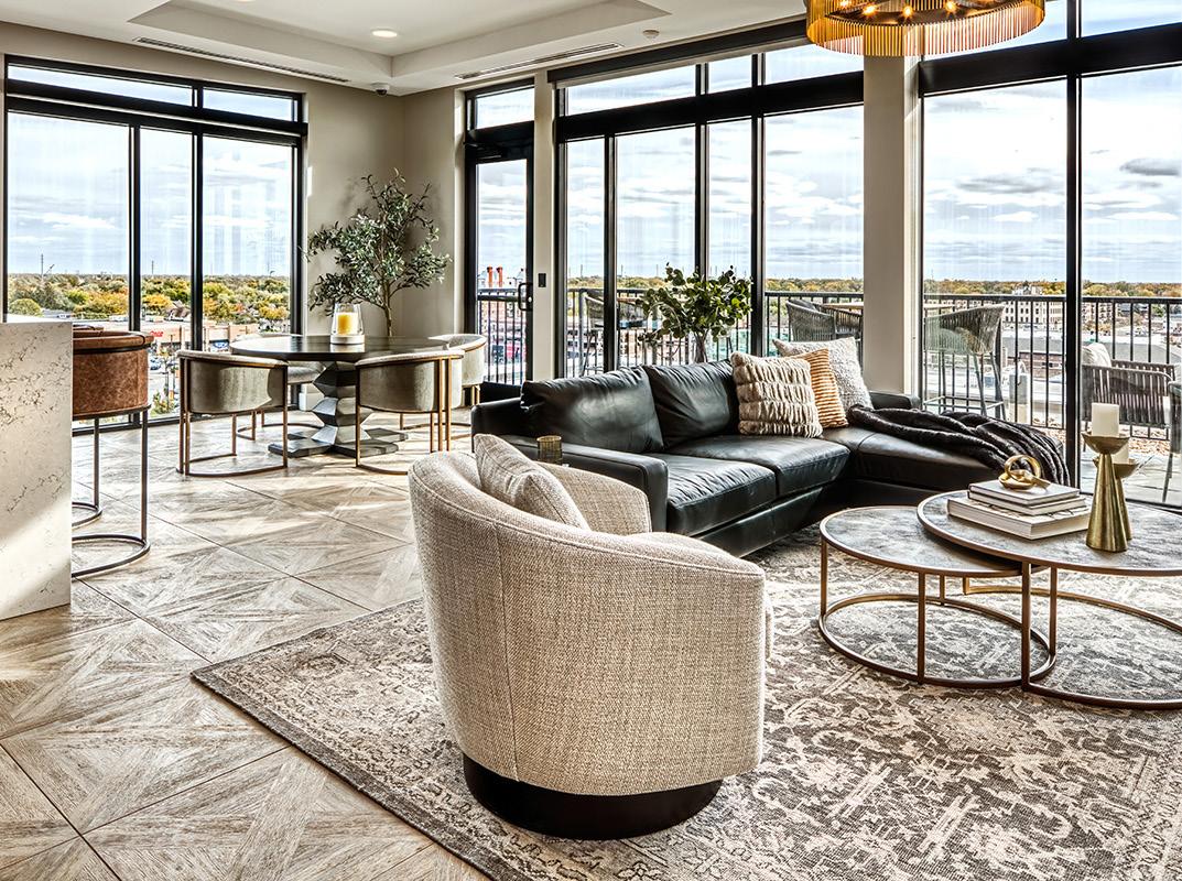 Originally built in 2015 and located in the heart of Greektown, the luxury high-rise interiors were lacking the artistic energy and residential warmth prospective West Loop residents desired. The interior refresh of Arkadia was achieved by melding spunky colors, playful patterns, and unexpected use of scale.