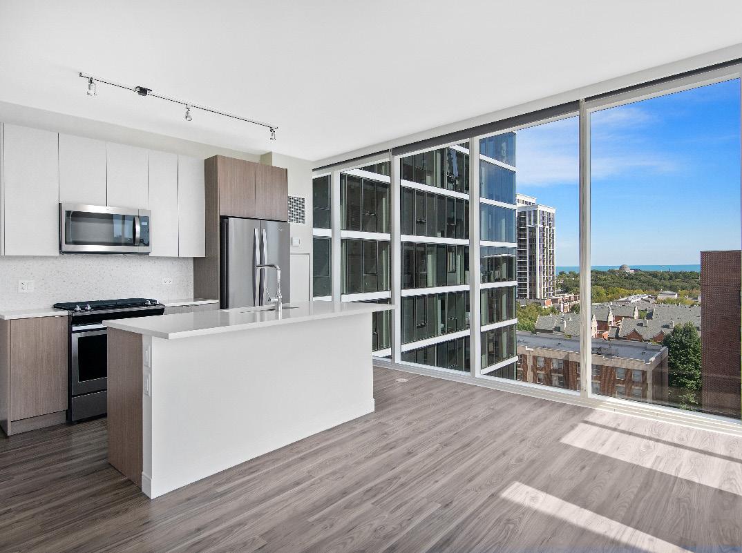 Lakefront high-rise offering modern apartments with resort-style resident amenities.