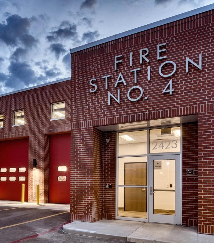 Originally developed as a two-story station to fit on a narrow site, a drastic local increase in construction costs forced the redesign of Station 4 as a single-story scheme, thus affecting the design of Station 13. The resulting design narrowed the apparatus bays slightly and moved closer to the neighboring property to the north, but bid within the City’s budget. The two-bay design uses brick and cast stone for longevity and includes a taller parapet at the public entry to aid wayfinding for the public. The Station will be LEED Silver in compliance with City statute.