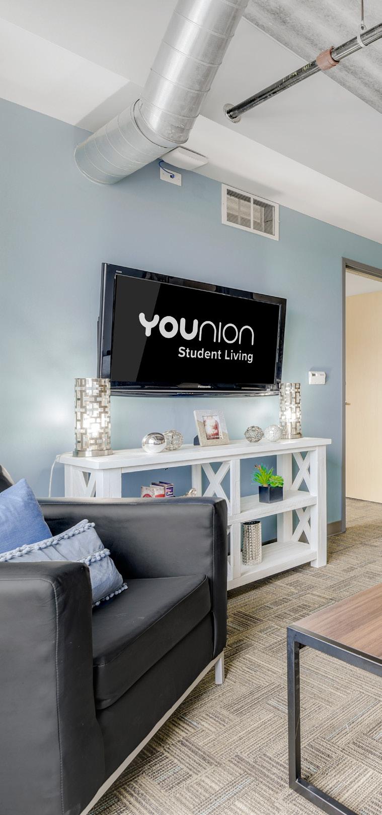 Inside, the apartments feature a refined yet cozy palette, balancing muted neutrals with pops of color and texture that infuse the space with life and creativity. Each unit is designed with student lifestyles in mind – providing plenty of storage, functional workspaces, and quality finishes that evoke both sophistication and ease. Common areas foster a sense of camaraderie and shared experience, from the state-of-the-art fitness center and study lounges to thoughtfully curated outdoor spaces that offer a refreshing retreat from campus life.