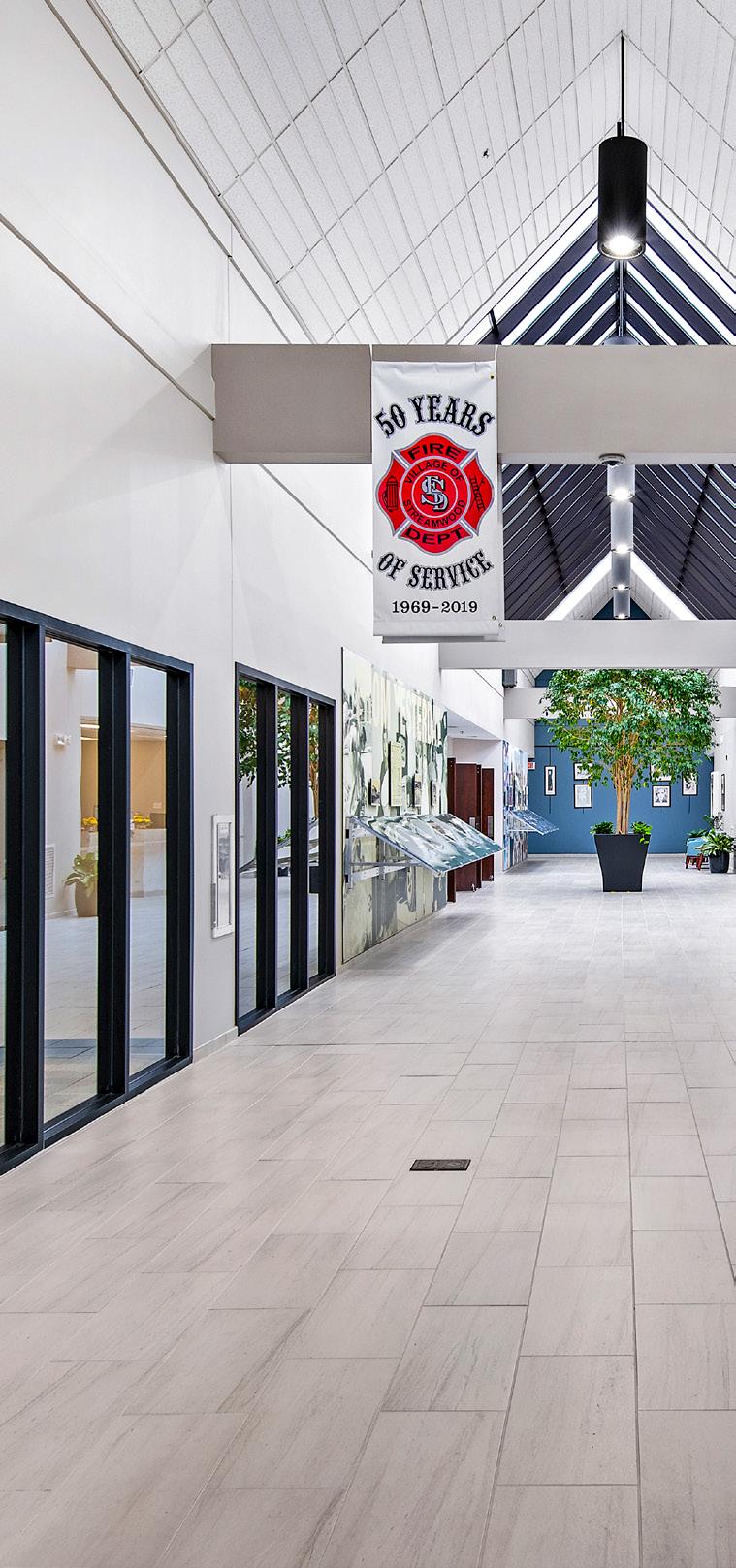 Integrated civic campus featuring fire, police, city hall, and public works.