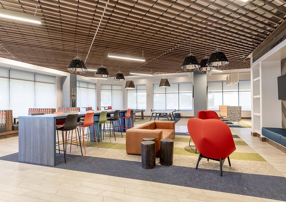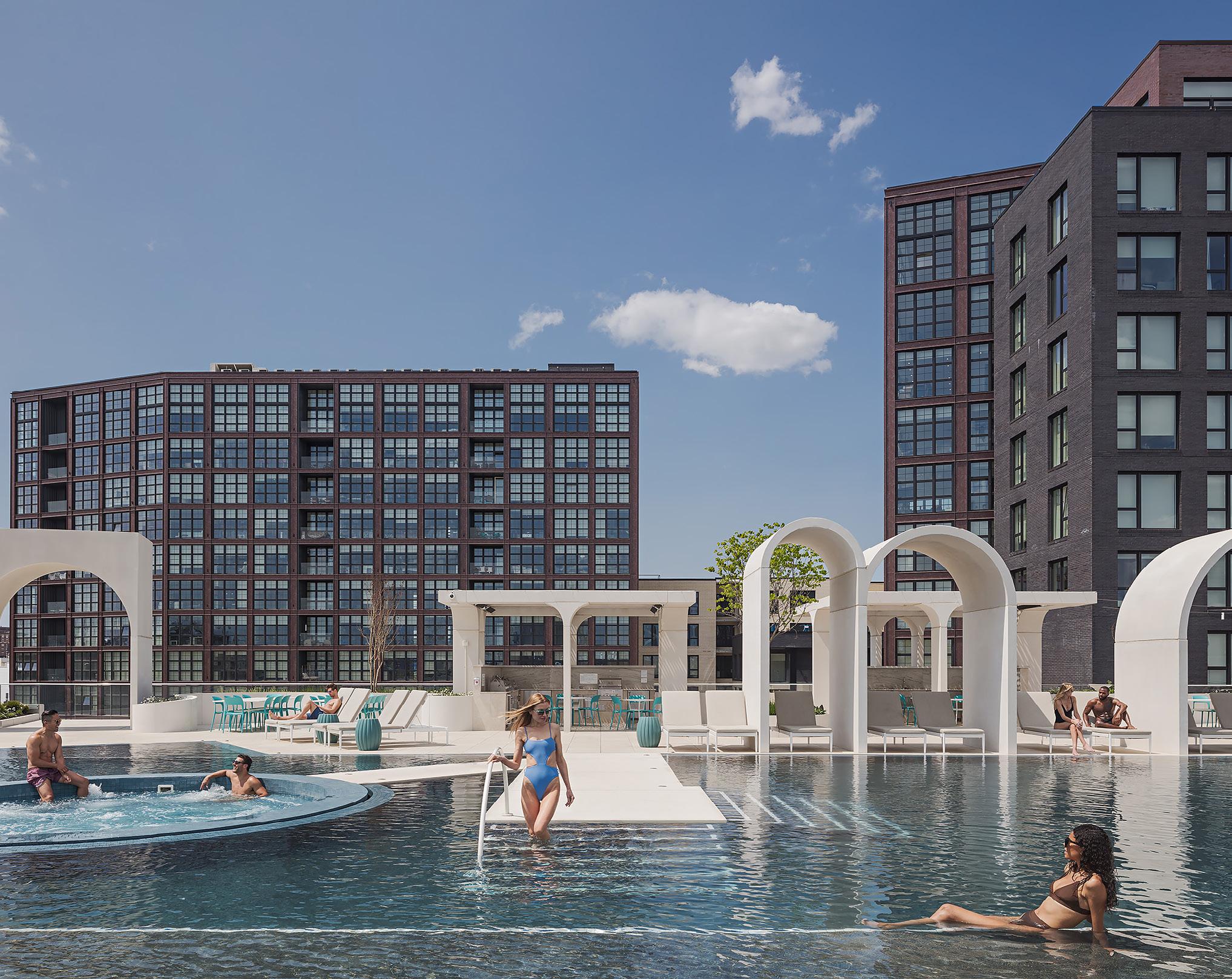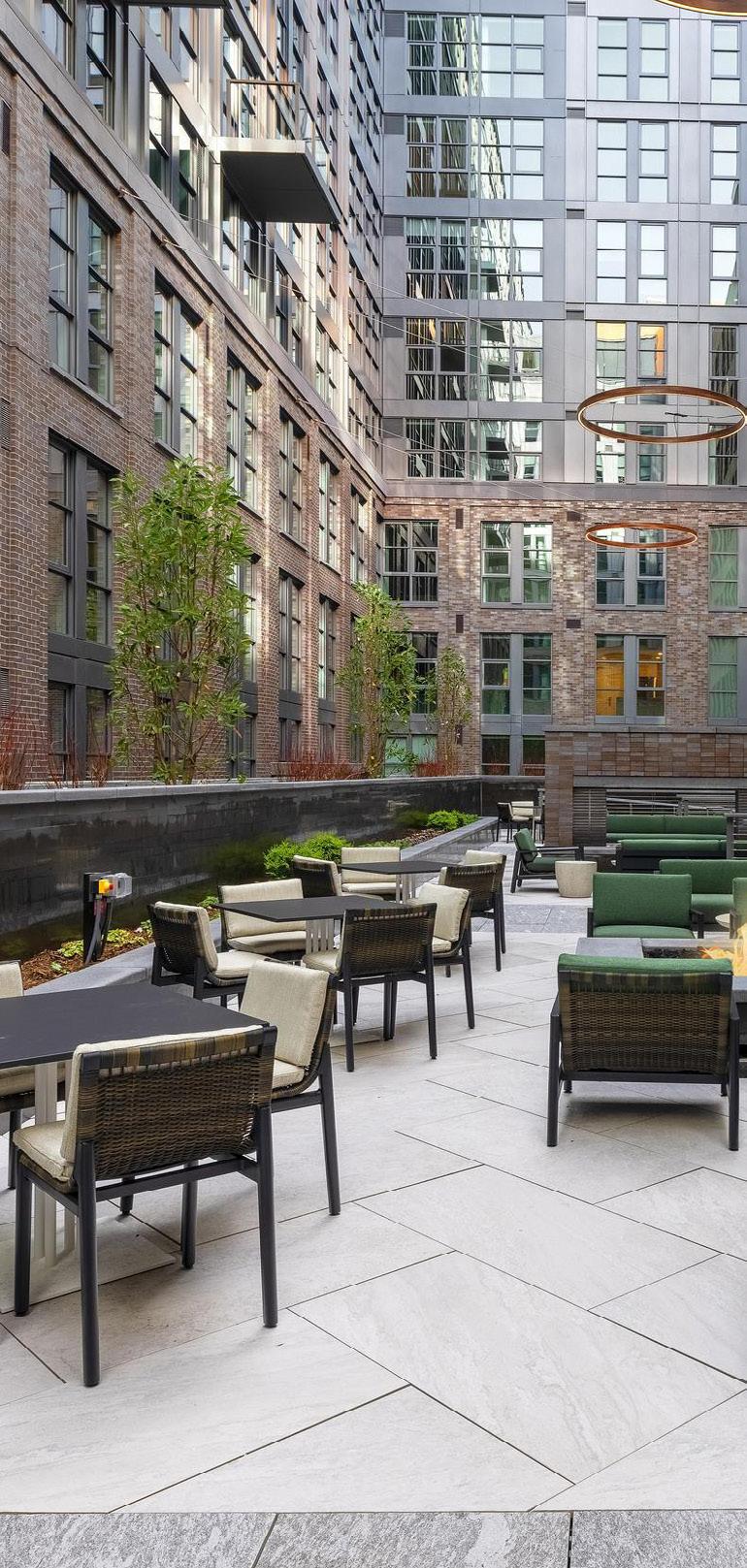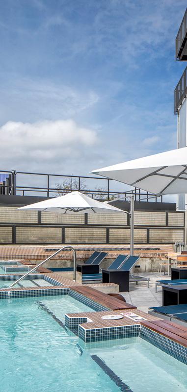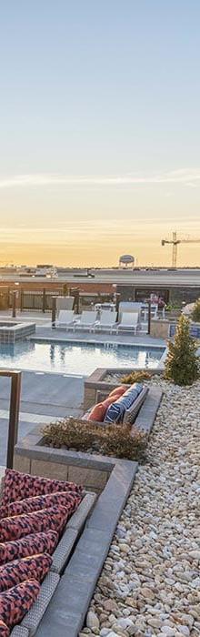Piazza Alta’s second floor features amenity space, which extends via skybridge across the courtyard. In addition, an amenity deck is located on the fifth floor, situated above the existing parking garage with two pools and robust lounge areas.