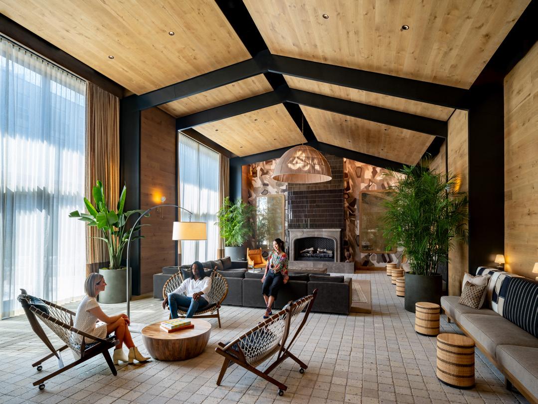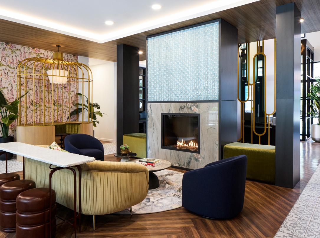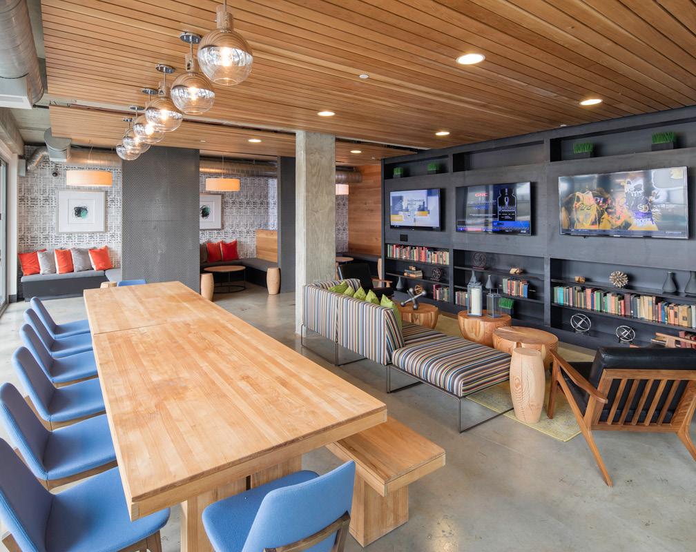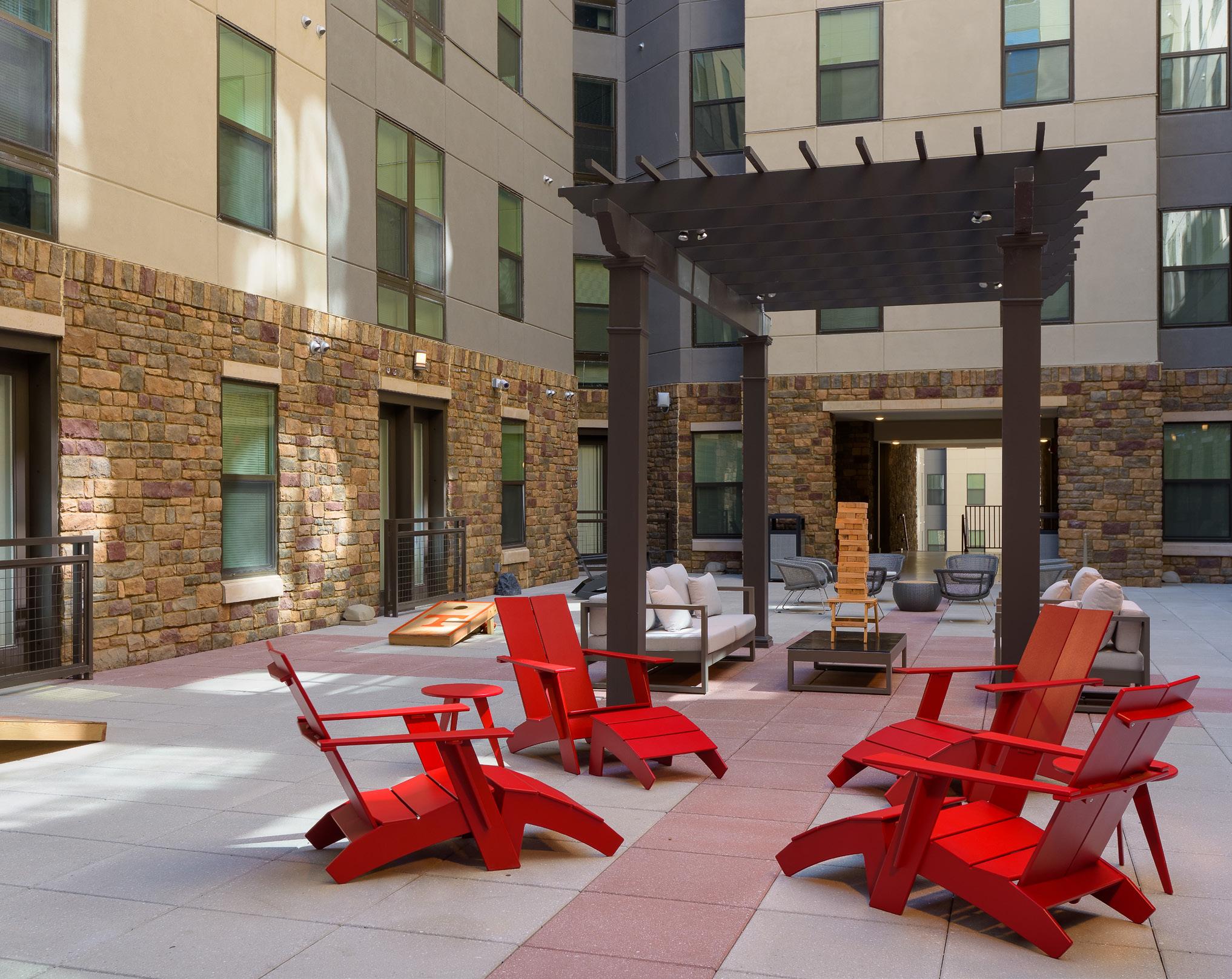 The residential community features multiple exterior courtyards and landscaped patios, providing spaces for relaxation and socialization. Inside, residents are welcomed into a market-style café highlighting local coffee and baked goods, and interiors incorporate handcrafted millwork, a playful muted color palette, and artwork by local makers. Every detail was designed to foster a sense of warmth, comfort, and connection, ensuring a home-like environment for all residents.