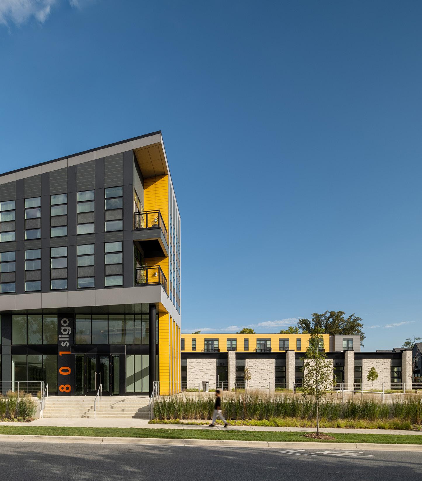 Located just north of the heart of Washington, DC, Silver Spring has grown into a major business hub, hosting multicultural festivals and supporting a thriving arts community. BKV Group, in collaboration with Artspace, Montgomery County, and the Montgomery Housing Partnership, has successfully transformed the former Third District Police Station on Sligo Avenue into a vibrant arts center anchored by affordable live/work housing.
