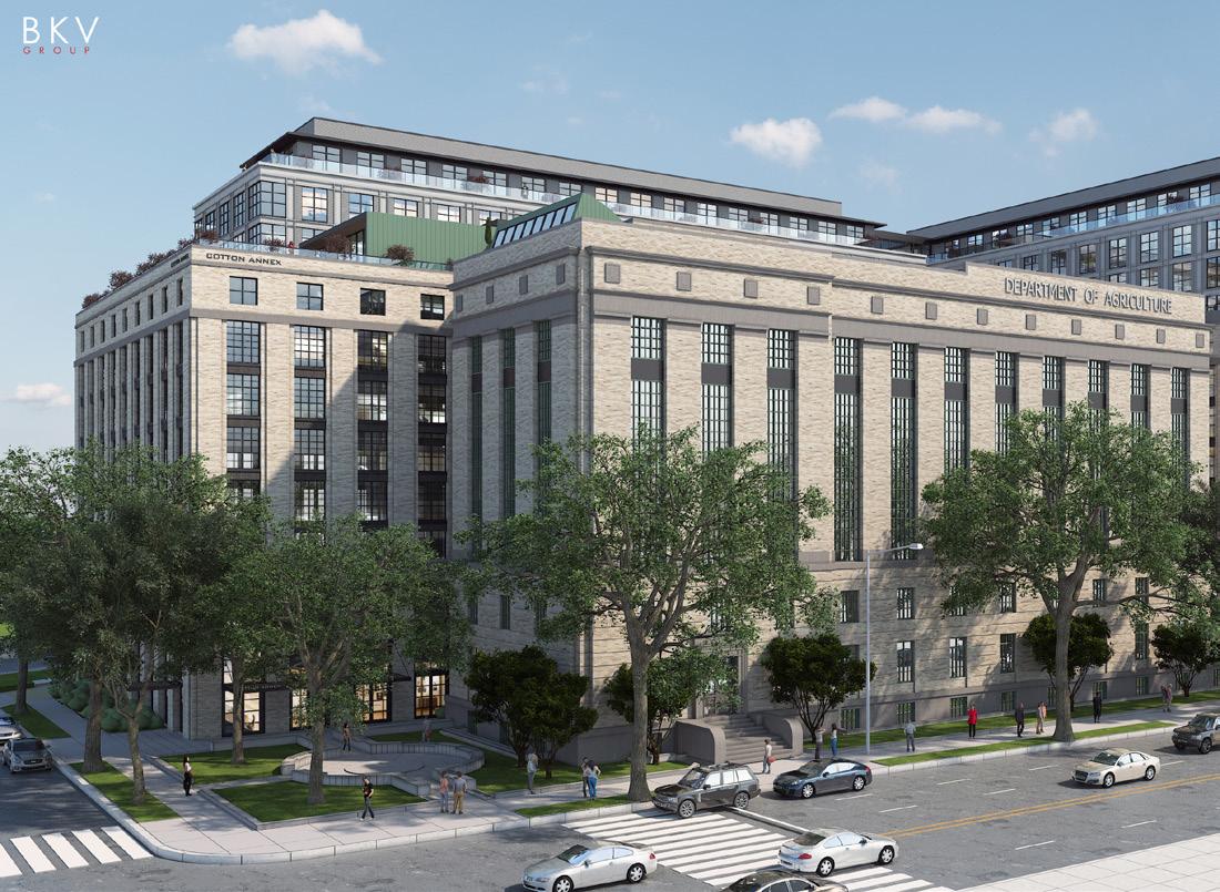 Designed for Douglas Development, The Cotton Annex is a repositioning of an existing 1930’s building. Built in the stripped classical style, as an annex to, the Department of Agriculture building in the heart of DC’s Federal Mall district the property was reborn as multifamily residential. It includes 90 units in the existing building and another 520 units in a new 12 story tower. The new tower features large penthouse units with private outdoor terraces and spectacular city views. Also included, is a roof top pool and clubroom space, fitness center, below grade parking, and a retail storefront.