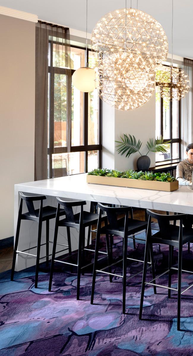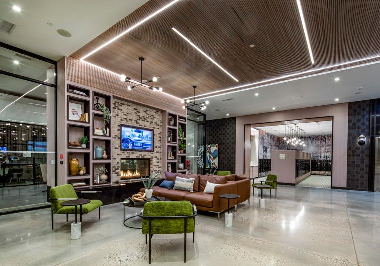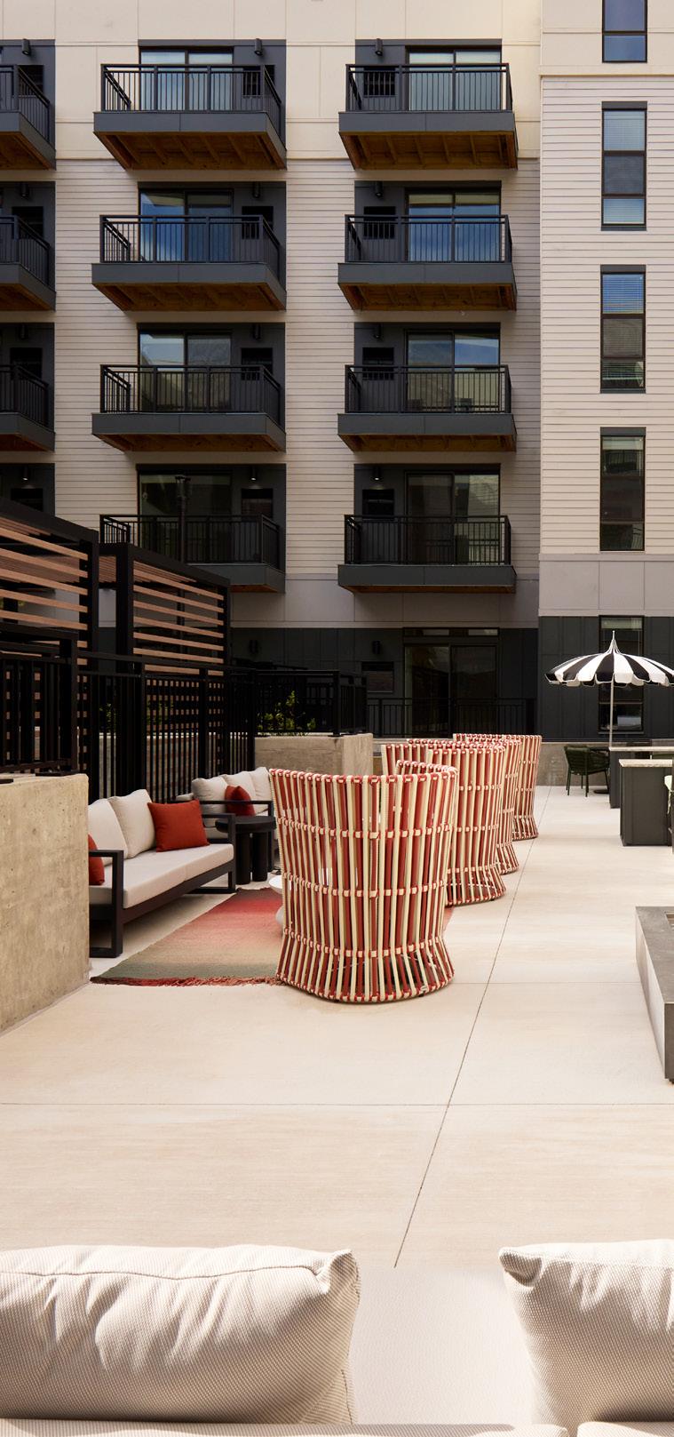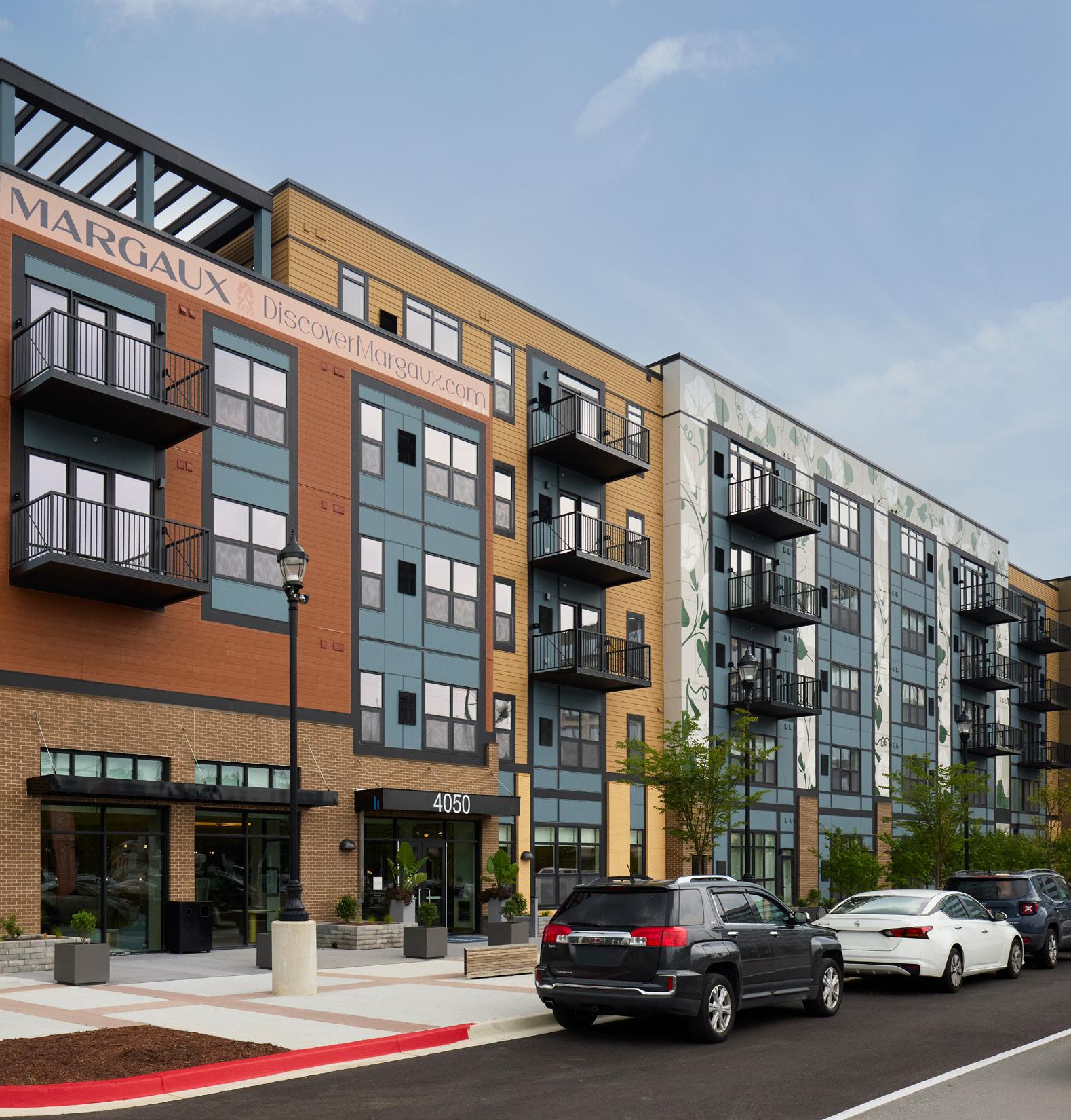 The community features a diverse mix of studio, one-, two-, and three-bedroom apartment homes, each crafted to maximize views and natural light. Generous shared amenities and communal spaces— designed for relaxing, hosting, or working—reflect Margaux’s focus on resident well-being and flexibility. Together, these elements create a vibrant, connected, and welcoming place to call home.