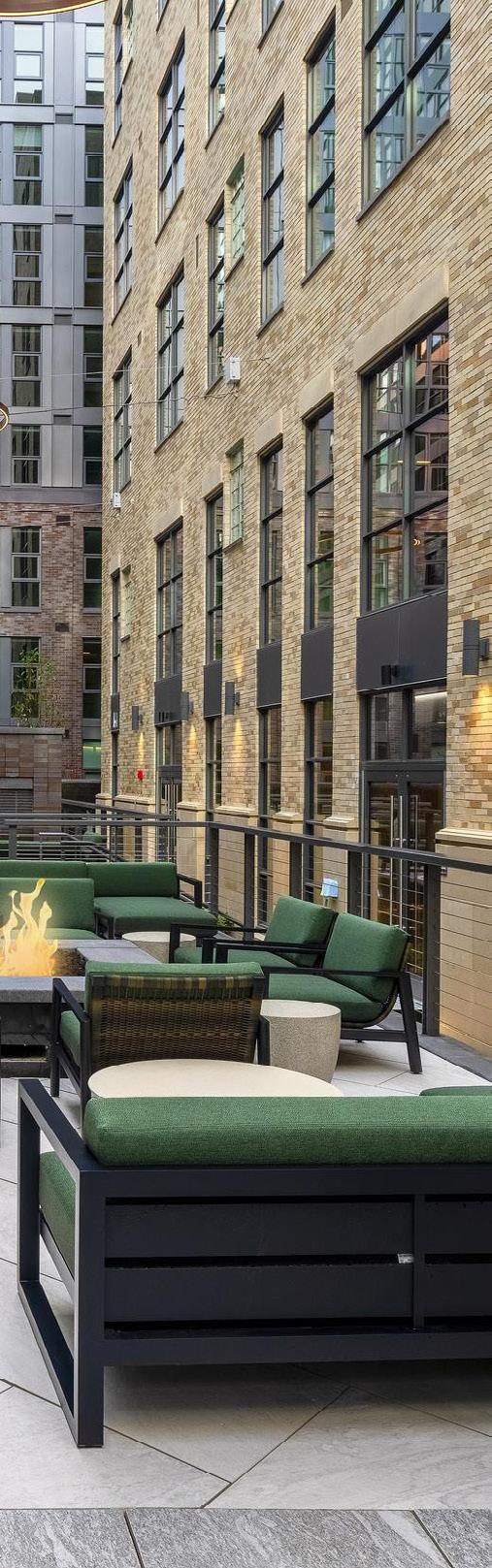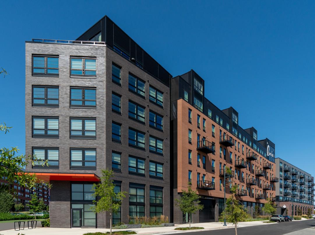 These mixed-use buildings feature ample retail spaces along the streets to further activate the urban activity. Proximity to two metro stations enhances the buildings’ attractiveness to residents who choose to live in the city and take advantage of the amenities the city offers. Amenities include a swimming pool and expansive sundeck, outdoor “living rooms” with grilling stations and outdoor kitchens, and a resident lounge with a kitchen, bar, private dining room, pool table, and media center. Units feature 9 foot ceilings, oversized stainless steel smart appliances, custom kitchen cabinetry, and terraced patio / balconies in select units.