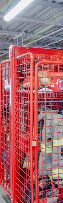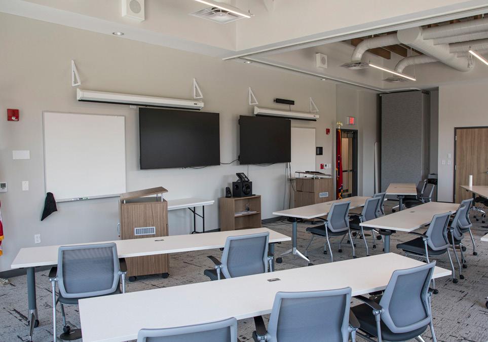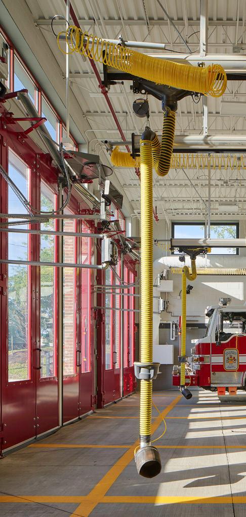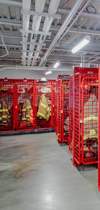 The facility accommodates bunk rooms, locker rooms, kitchen, dining, and dayroom spaces on the first floor, with offices and a large training room on the second floor. Centralized PPE storage, decontamination zones, and utilities support both apparatus bays. Unique to this highrisk environment, the design integrates specialized training features— including catwalks, cage ladders, stairs, and ship ladders—to simulate the complex industrial conditions of uranium production.
