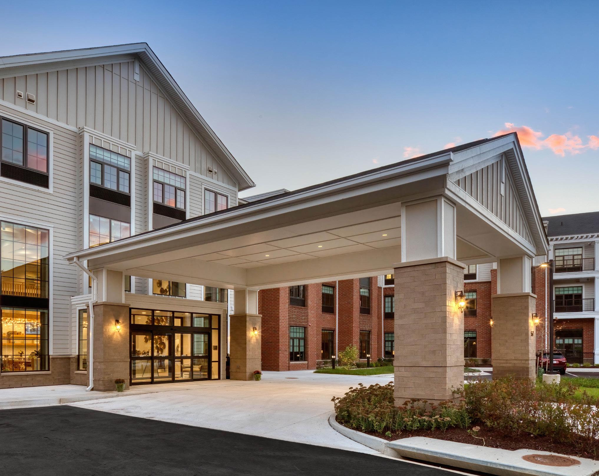 Constructed on a 5.65-acre parcel, The Barclay at Tuckahoe delivers a vibrant and inviting senior living environment inspired by Federalist architectural principles, reinterpreted with modern materials and design elements. The building’s symmetrical massing, brickwork detailing, cobblestone accents, and projected bay balconies create a visually engaging exterior.