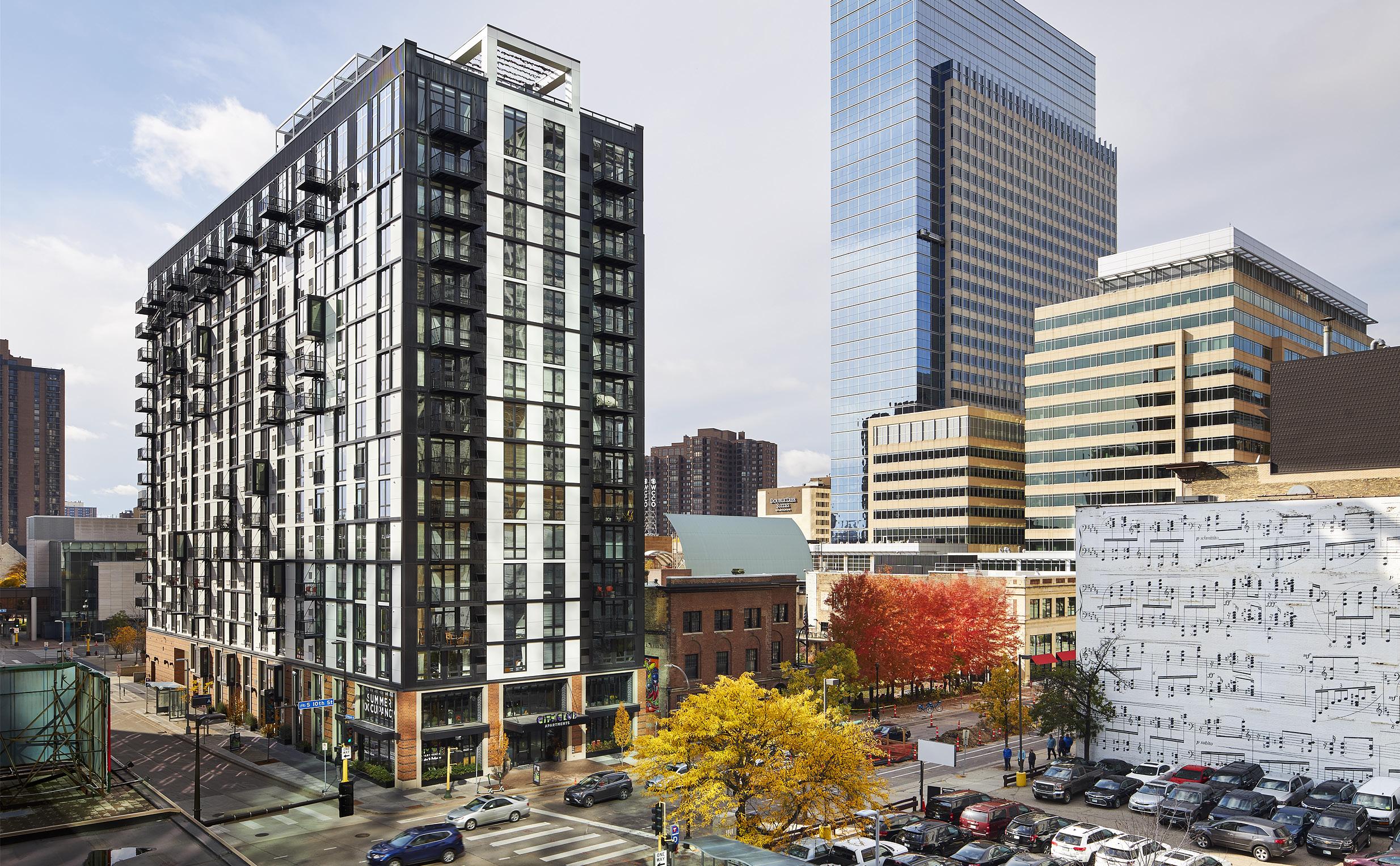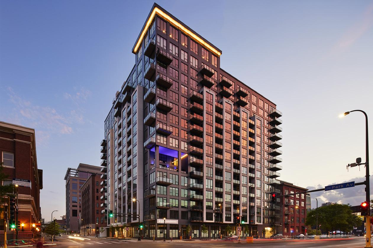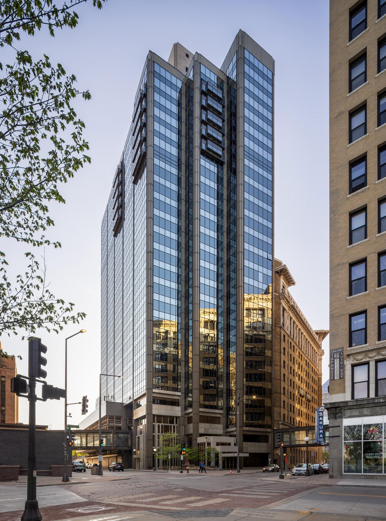 Landmark Tower, formerly known as Amhoist Tower is located at 345 St. Peter Street in St. Paul, MN. Built in 1983, the building is a Class A 25-story High-Rise, previously containing 20 floors of Class-A commercial office space and five floors of residential condominiums. The building area is approximately 213,000 sf with roughly 11,600 sf per floor, and converted floors 1-20 of Landmark Tower from office to residential use. Renovation includes 187 residential units, and includes new common area amenities including a rooftop outdoor patio, a tech lounge/coworking office, a club room, a fitness room, and a package room. Project also includes renovations to the parking ramp.