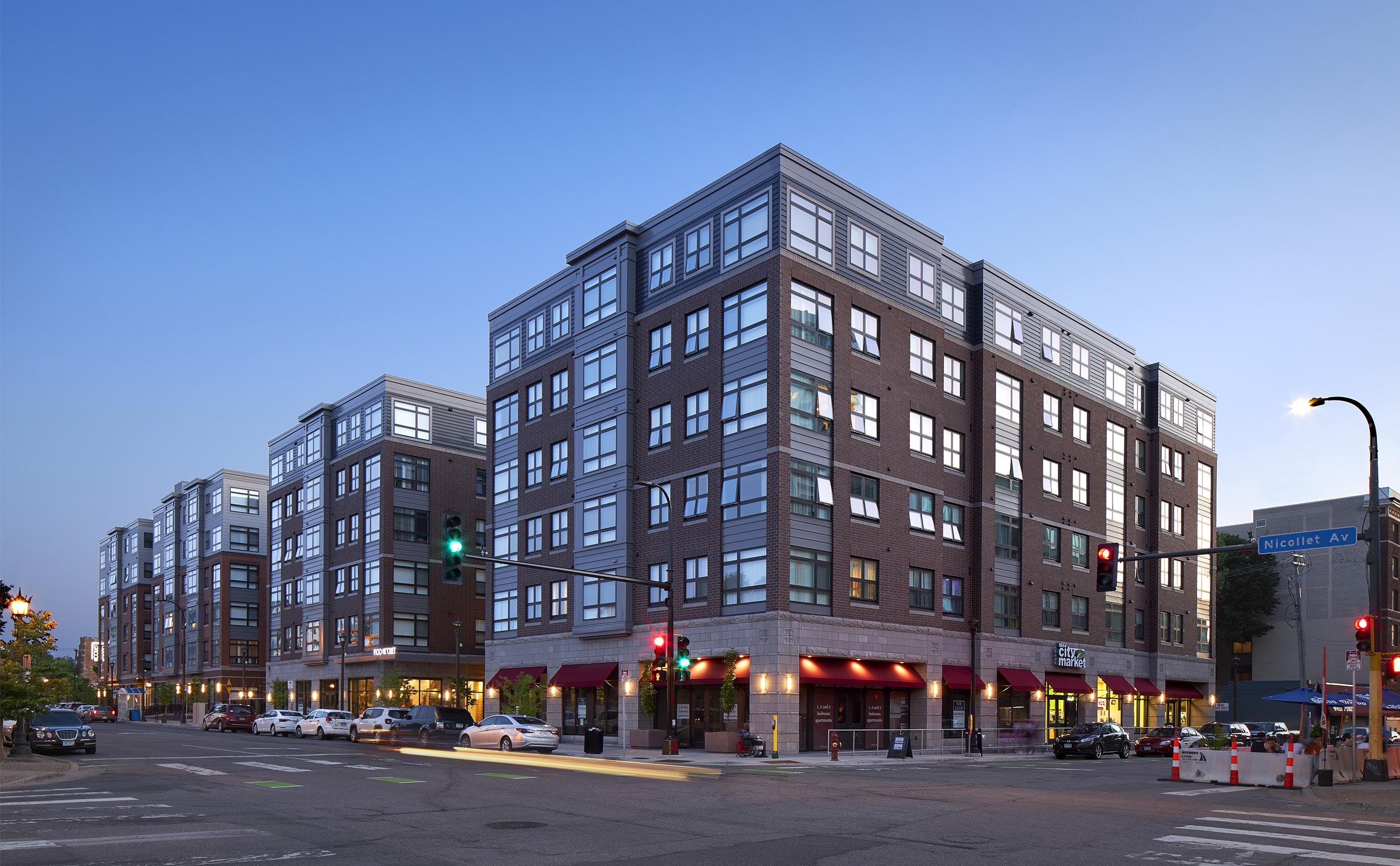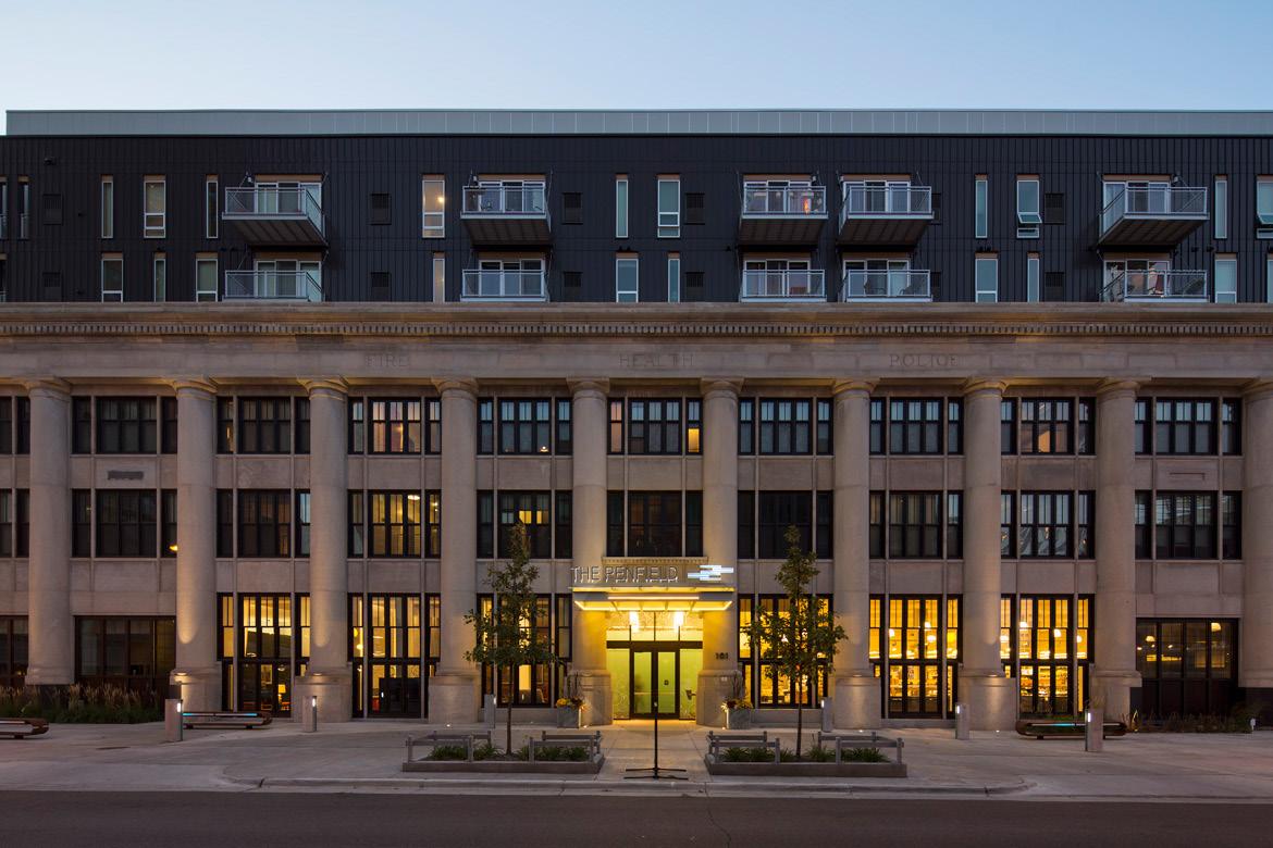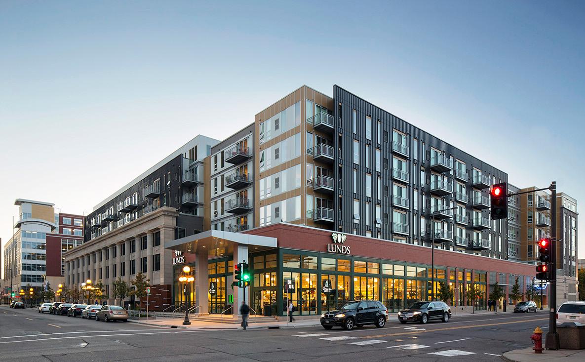 The LEED Silver® Penfield is a six-story mixed-use development featuring 254 market-rate apartments, a 30,000-square-foot Lunds grocery store, and approximately 330 enclosed parking spaces. Designed to support downtown St. Paul’s strong employment base, the project offers residents exceptional walkability to government offices and key civic destinations. Its location just one block from the Green Line further reinforces its role as a transit-oriented community, providing convenient access to the broader metro area. The Penfield delivers a modern, amenity-rich living experience while anchoring an active and connected urban neighborhood.