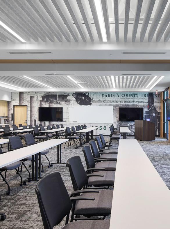 This project involved the renovation of a 4-story corporate office building for the Mille Lacs Band of Ojibwe on Trust Land at the Grand Casino Mille Lacs reservation in Onamia, MN. As part of a multi-phase masterplan, the project replaced the building’s exterior envelope and fully redesigned the interior to create an open-concept corporate office that honors the Band’s heritage while embracing a forwardlooking vision.