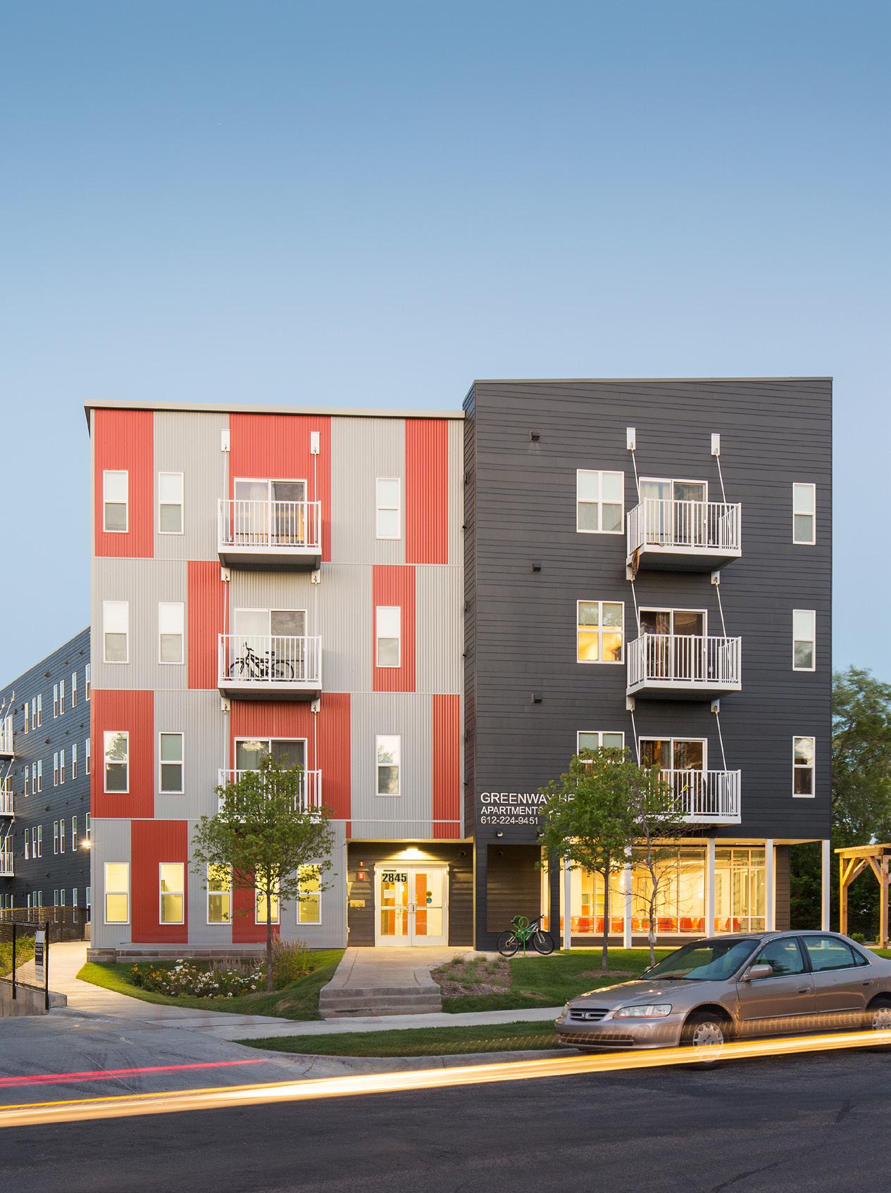 Located at the former Weyerhaeuser lumber site in St. Paul, MN and phase one of a larger housing development that also includes a senior housing building. The building provides 121 units of affordable housing for families.