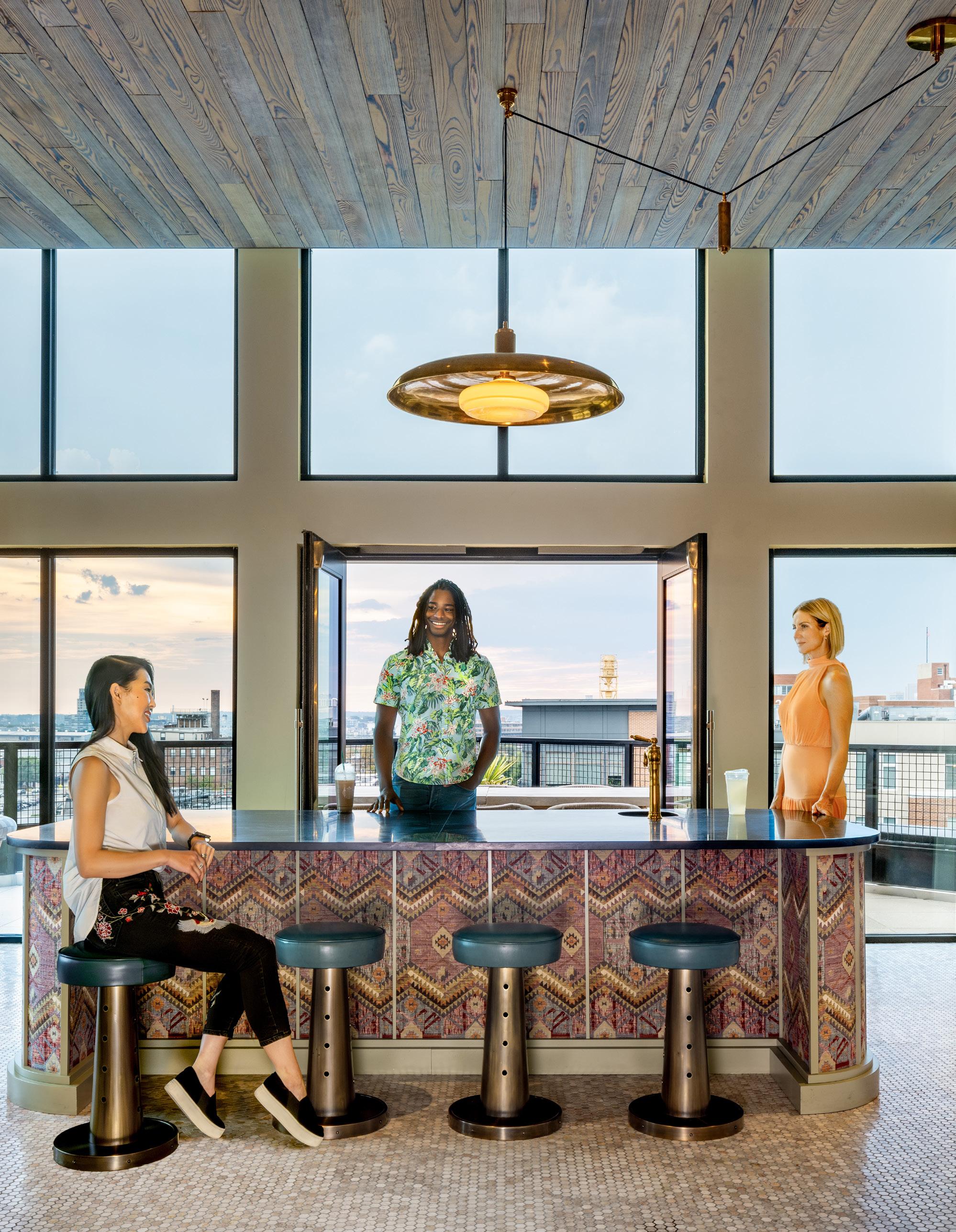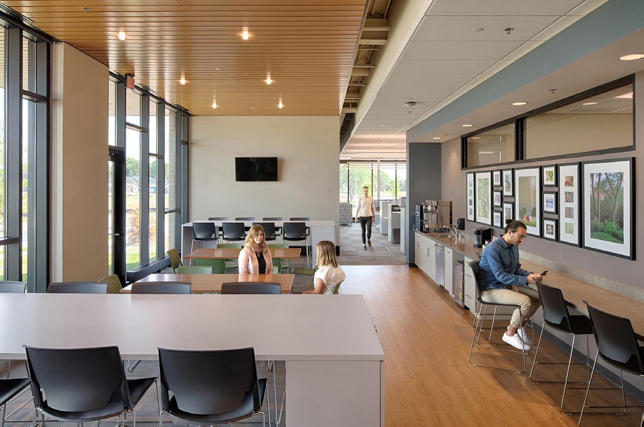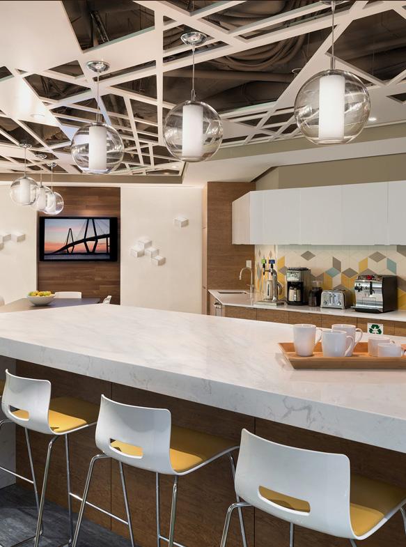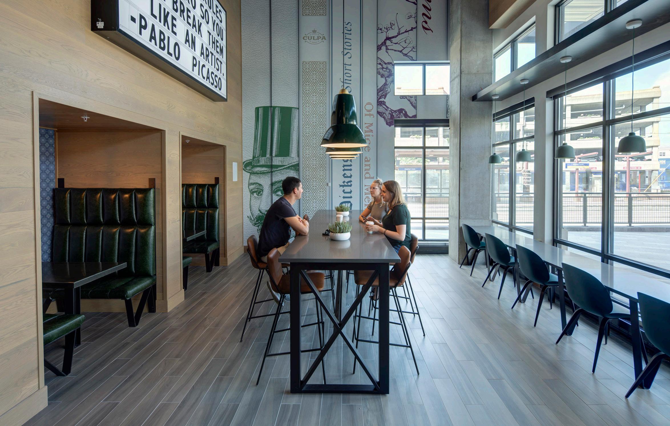 Casual, multi-use space which facilitates open work, open collaboration, and after hours functions.