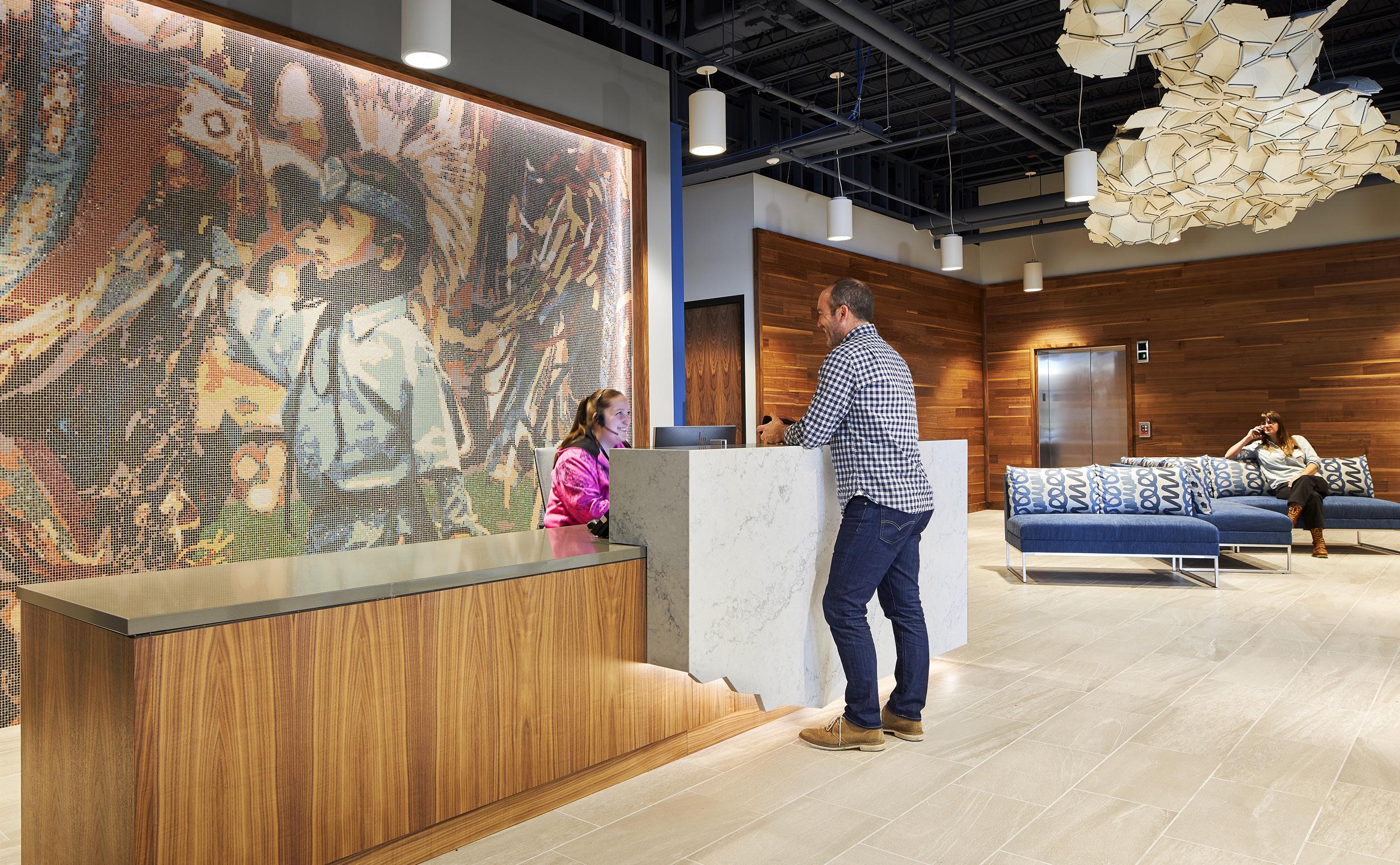 MoZaic is a transit-oriented, mixed-use development that is organized around a large urban plaza, and connects dining and commercial uses at grade level with the Hennepin transit station. The design makes the most of its constrictive site geometry and creates a multi-modal transit hub, aligning with its design vision to produce a meaningful building that’s responsive to its dynamic site and users.