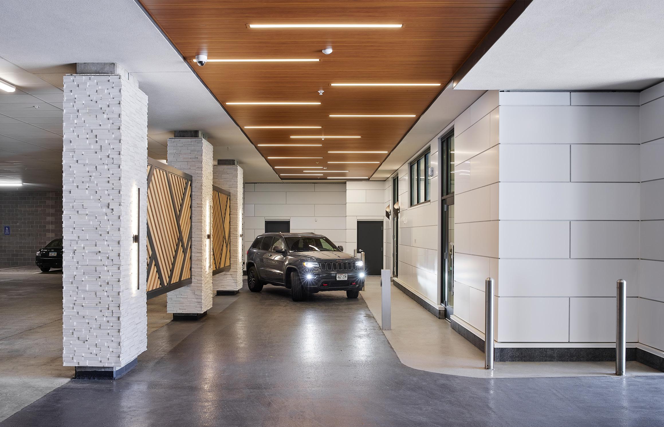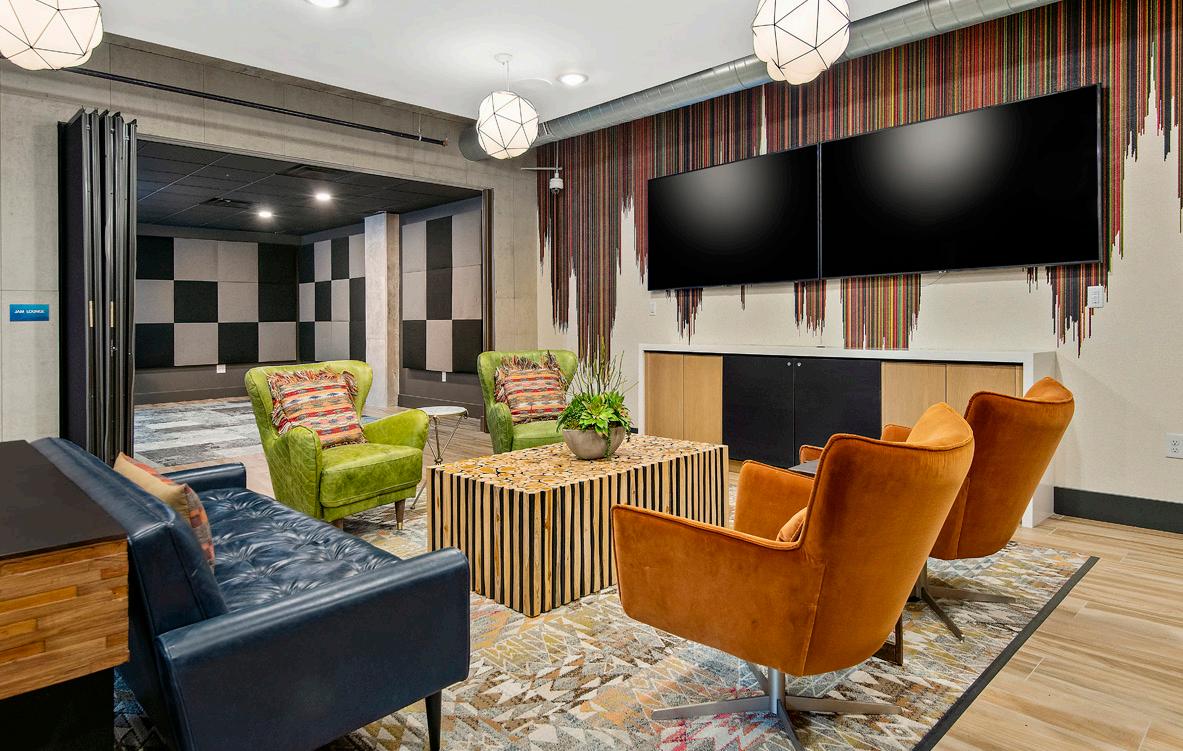 The Deacon includes 17,500 square feet of customized amenities, and users having access to a jam lounge, music practice rooms, a golf simulator, pet spa, 24/7 fitness center, hammock lounge, and private work lounges. The project also includes pedestrian connections to an existing 6-story parking garage.