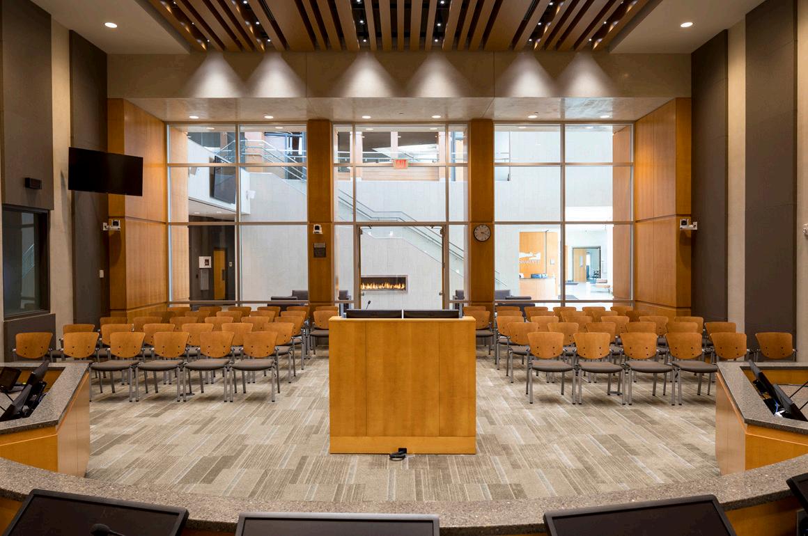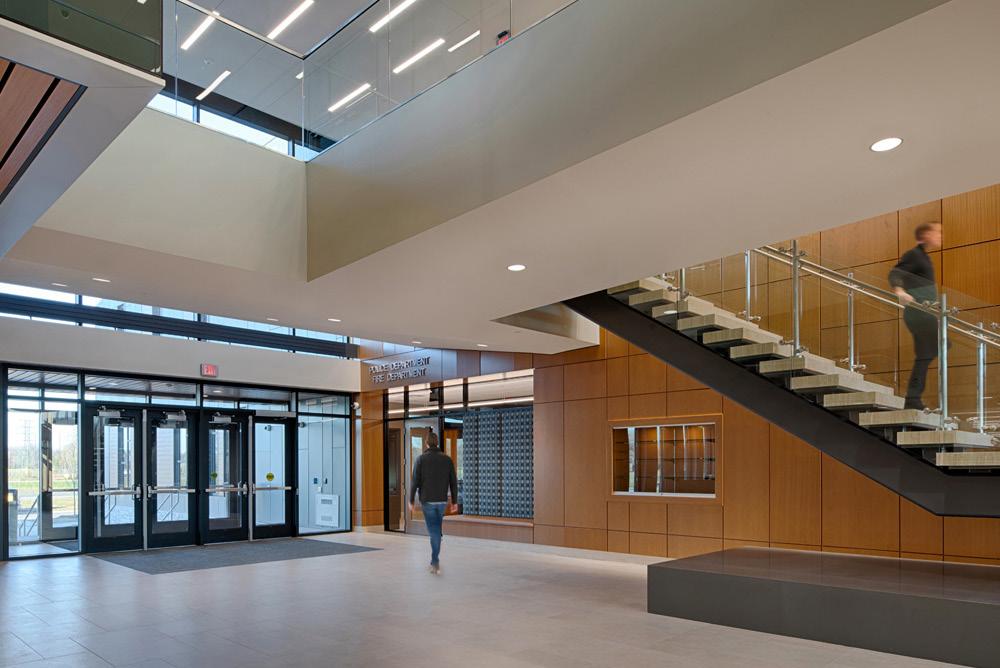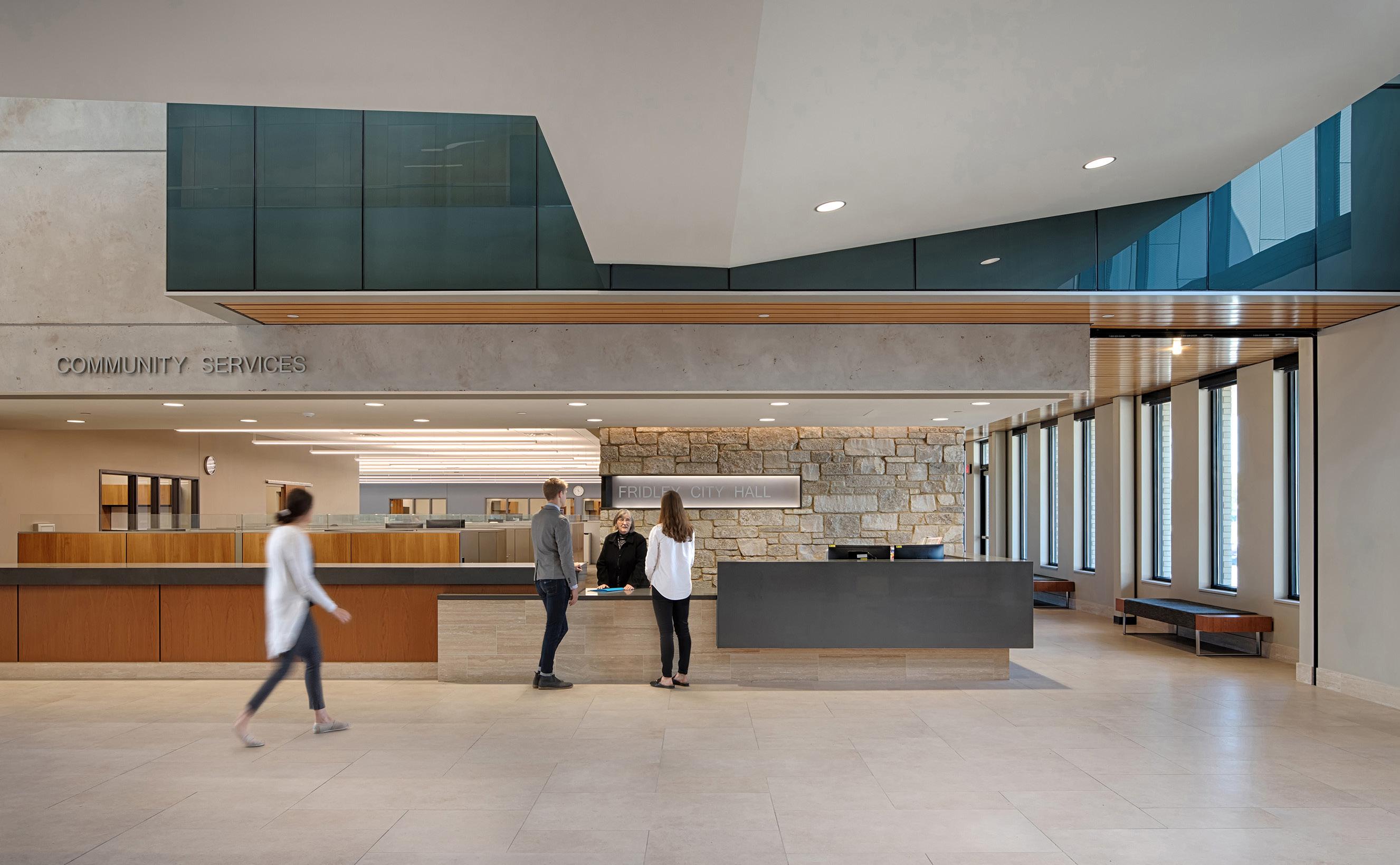 The new city hall office’s were designed as an expansion to the existing police station. The new facility includes a state-of-the-art council chambers and large community meeting room designed to be available to the public. Key City services are located along a light filled public service corridor creating seamless opportunities to conduct business between the public and city staff.